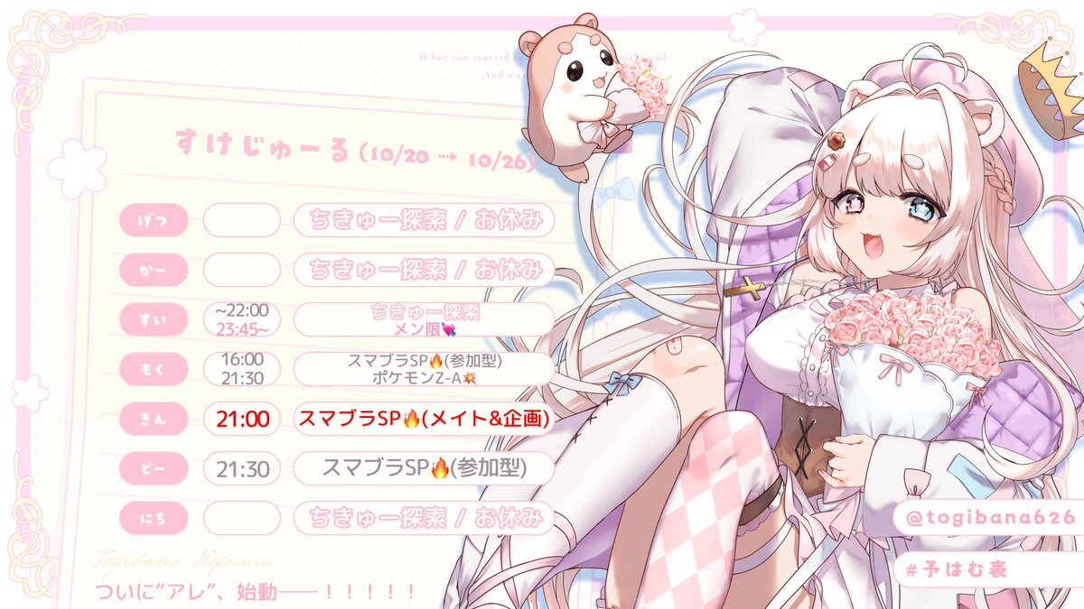 ╭━━━━━━━╮ 🗓️#予はむ表✍️ ╰━v━━━━━╯  ˚ʚ🐹ɞ˚ 大好きな“あなた”への招待状💌✨ 続・スマメイト33期に挑戦ッ💪️🔥 木曜日と土曜日は #ポケモンレジェンズZA 進めるよ〜🫶🏻💕 今週も何でもない日のぱーてぃーを一緒に楽ちもうね🫖🐁🎩 #スマブラSP #個人勢Vtuber pic.x.com/mtC8ORuGkj