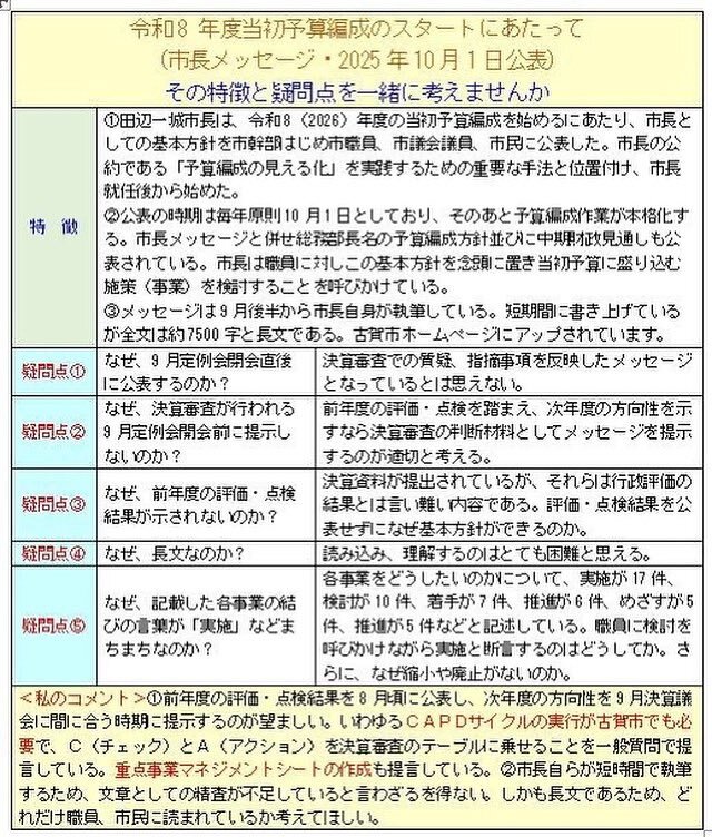 市長室ブログを更新しました! 令和8年度当初予算編成が始動/高校生リバースメンターから政策提言/「地方行政」インタビュー(10月1日) city.koga.fukuoka.jp/blog/item/4520 @kogacitywebより #古賀市 #2026年度 #令和8年度 #当初予算 #予算編成 #高校生 #リバースメンター #高校生リバースメンター pic.x.com/VzOZlZQafR