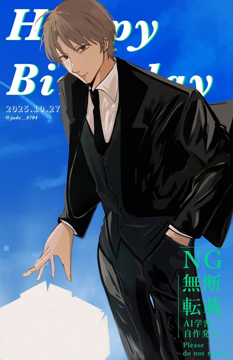 おめでとう🎉コスプレ感を出したくなくてスーツにしたけどかえってコスプレ感が出ていることに気づかない天然さんです♪ キャラ誕にて『二宮匡貴』さんの誕生日を2番目にお祝いしました! 記録→ schara.sunrockgo.com/happylog?n=941… #二宮匡貴生誕祭2025