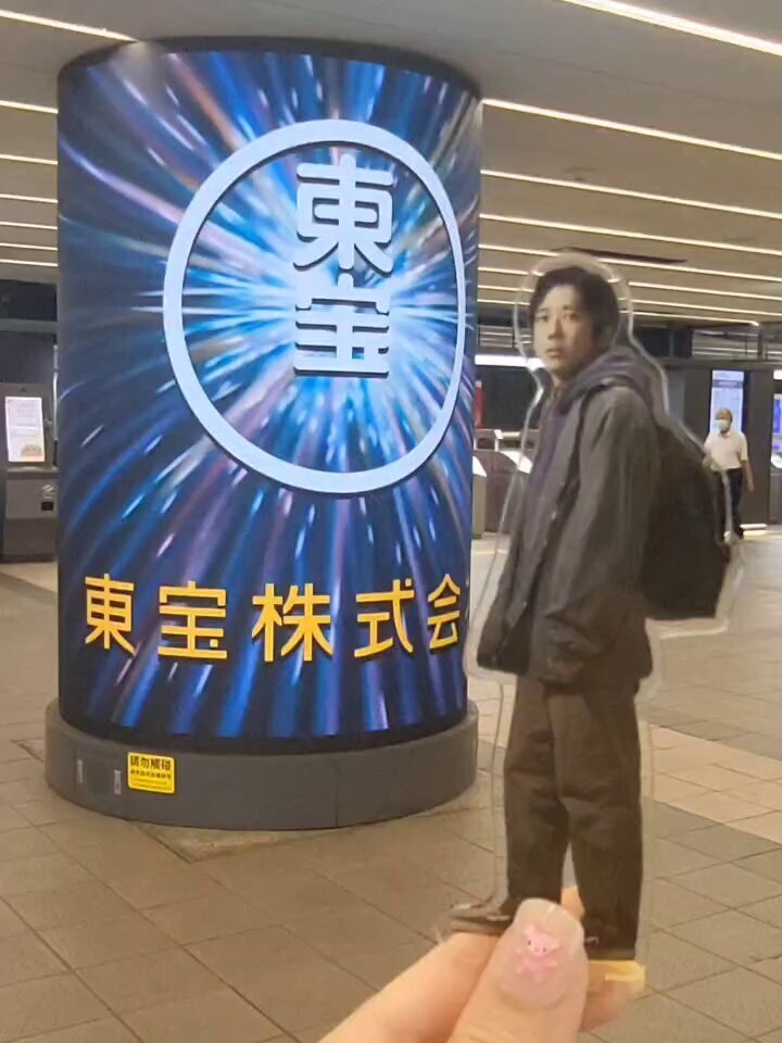 昨日帰ってすぐ見に行った💛 台北・中山駅の円柱LEDで #8番出口 の広告が流れてる。全体で約4分20秒、4種類の映像が順番に。 普段は映画のスクリーンでしか"迷う男"を見られない(当然だけど)けど、こんなに近くて大きなスクリーンで見るのは初めてで、本当にかっこよくて大好きで、ずっと見ちゃった🥹