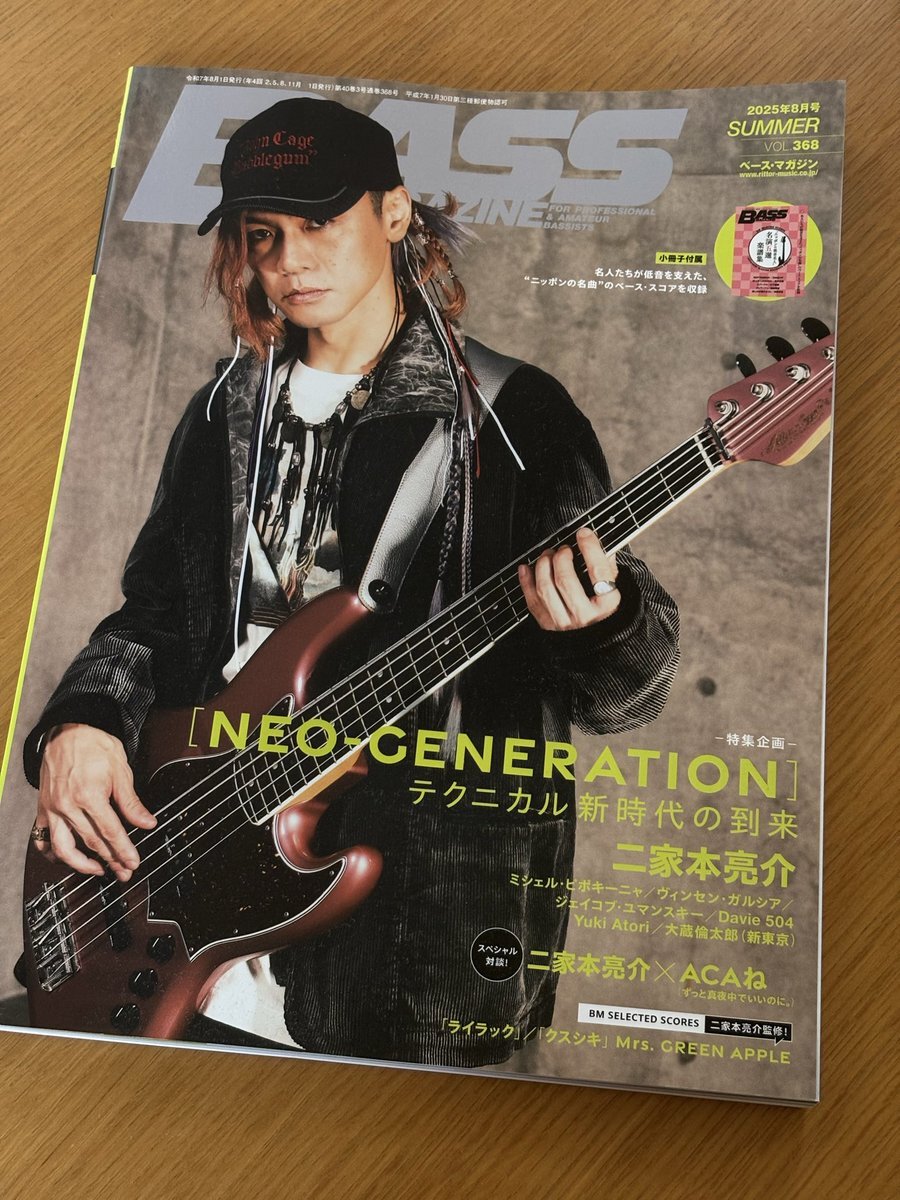 ベースマガジンの表紙を飾らせていただきました㊗️初めて買ったベーマガは00年8月号、その25年後自分が表紙になるなんて… 今回超二家本な内容になっていてこれを読めば立派な二家本!詳細は追って! ACAねちゃんとの対談も色んな話が出来て通じ合えていて嬉しかった🐈 僕が2000冊買うので予約はお早めに! x.com/bassmagazinejp…