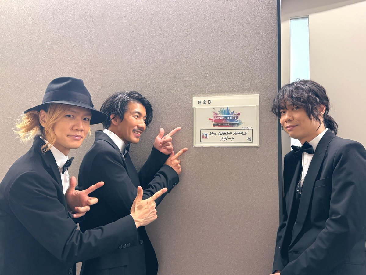 サポメン'ズ ダニキ(#神田リョウ) カネチー(#兼松衆) ニカちゃん(#二家本亮介) 鉄壁だね👍👍👍 #Mステ #MrsGREENAPPLE #GOODDAY x.com/tatakiyagroove…