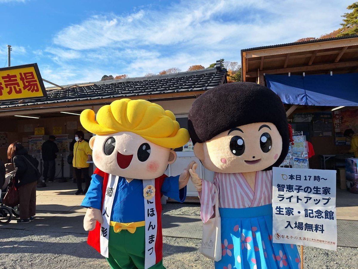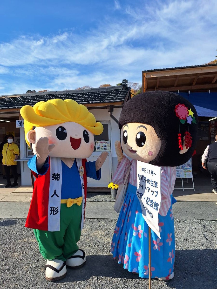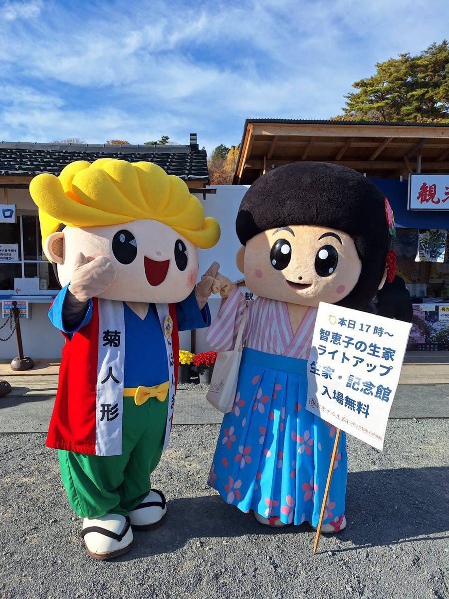 #二本松の菊人形 会場にちえこちゃんがやってきた❣️ 本日17時から行われる #智恵子の生家 ライトアップイベントのPRのため、急遽出動したちえこちゃん。このあと14時半からまた皆様にご挨拶にうかがいます😆菊人形会場で見かけたらぜひお声がけくださいね😘 pic.x.com/465I0tlgdT x.com/bunkashinko2/s…