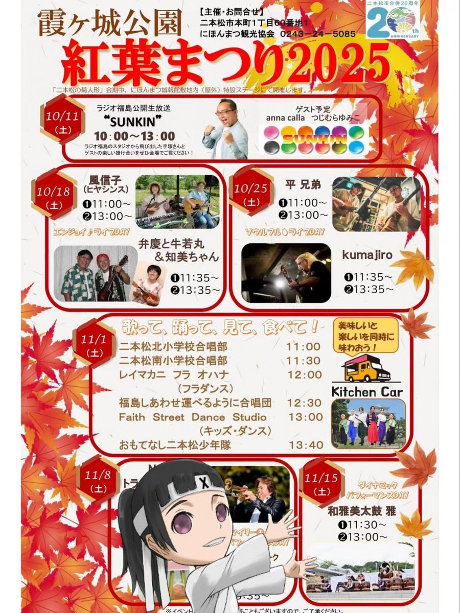 いよいよ今週末で #紅葉まつり も終いにございます!ラストを飾るのは #和雅美太鼓雅 の皆さんです! 当日二本松市観光PR隊 #おもてなし二本松少年隊 も出陣! #福島県 #二本松市 #イベント情報 #二本松の菊人形 #紅葉 #観光 #旅行 instagram.com/p/DQ_admJktjC/… pic.x.com/K2BWTpzLVf