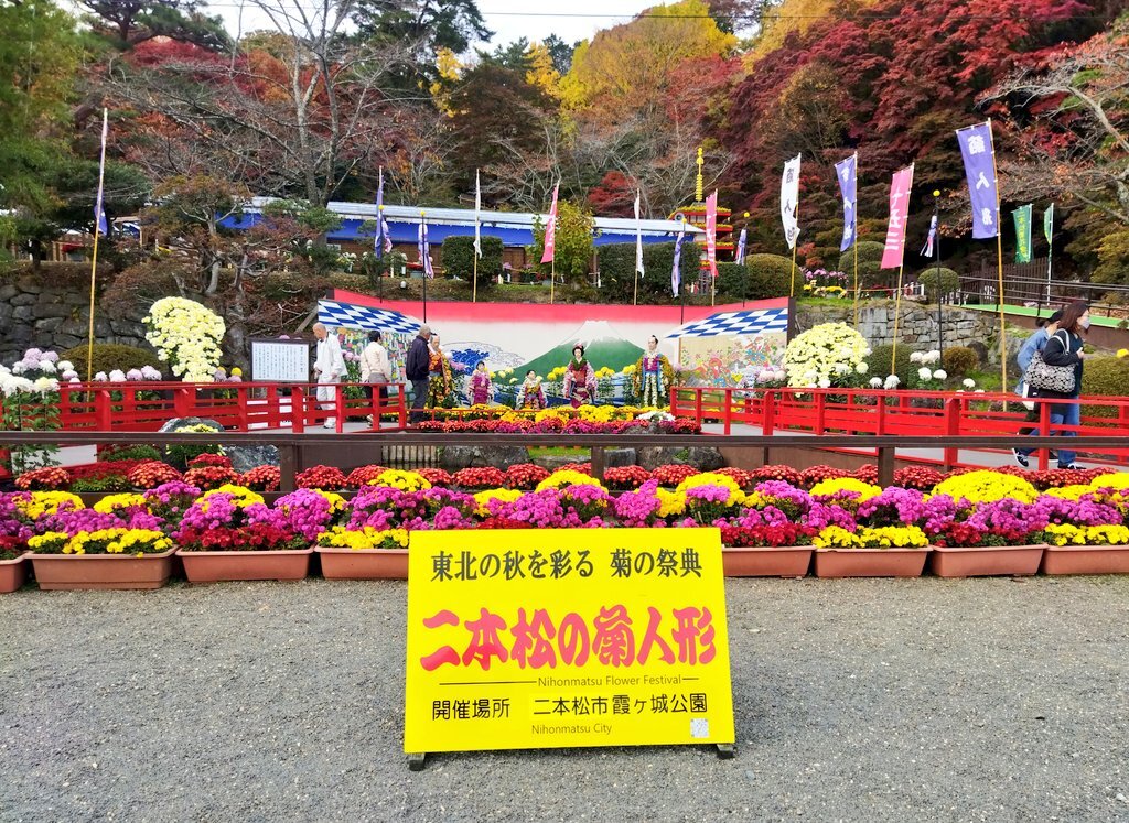 菊人形開催期間も残りわずか… 紅葉と菊のコントラストが美しく 周る度に違った発見があります お気に入りの場面や菊を見つけるのも楽しいですね😊 今週11/15(土)は紅葉まつりステージと菊人形が一緒に楽しめるラストチャンス✨ ぜひこの機会に足をお運びください🍁 #二本松の菊人形 #紅葉まつり pic.x.com/QPIpNyRsXm
