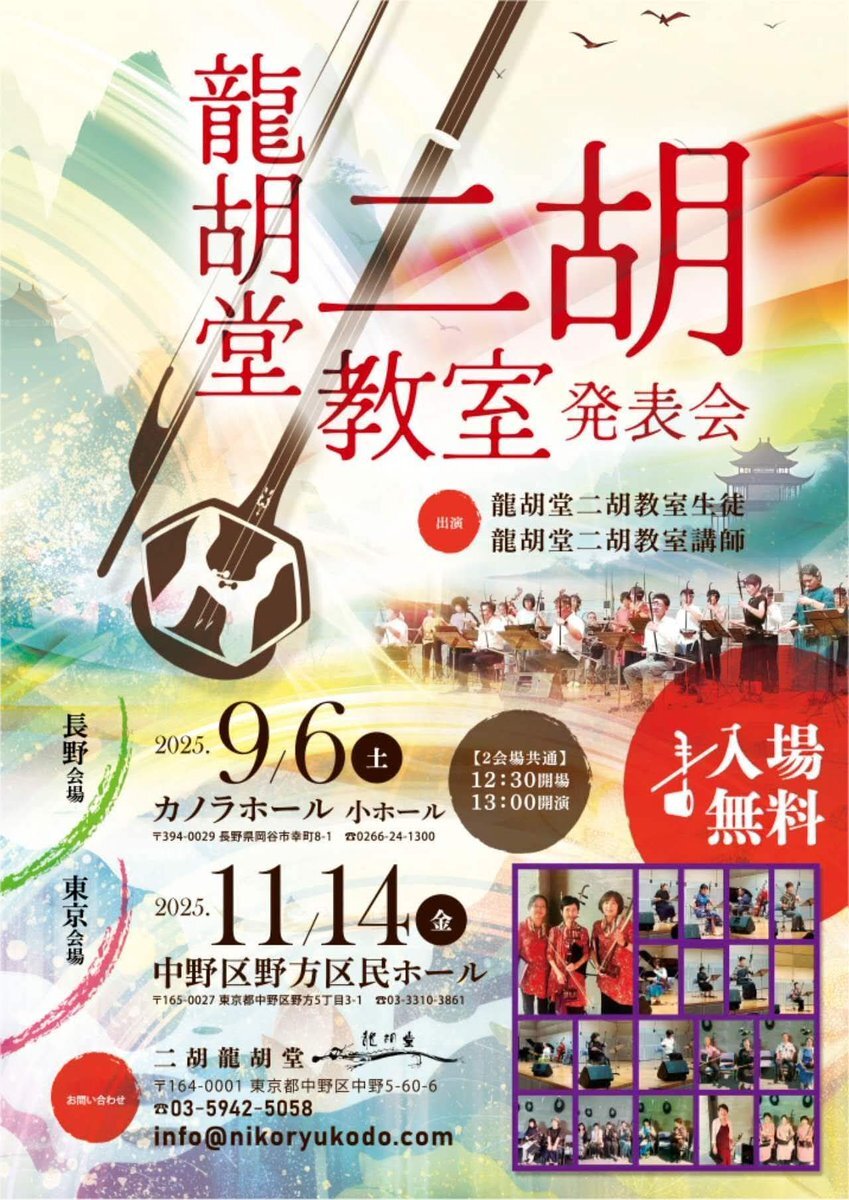 龍胡堂二胡教室    東京会場発表会‼️ ⭐️11/14(金) 中野区野方区民ホール ⭐️開場 12:30  開演 13:00 ⭐️入場無料 龍胡堂二胡教室生徒と講師の演奏をお楽しみください❗️ 二胡龍胡堂 ☎️03-5942-5058 nikoryukodo.com #二胡 #二胡龍胡堂 #二胡教室 pic.x.com/dUowYrgt49