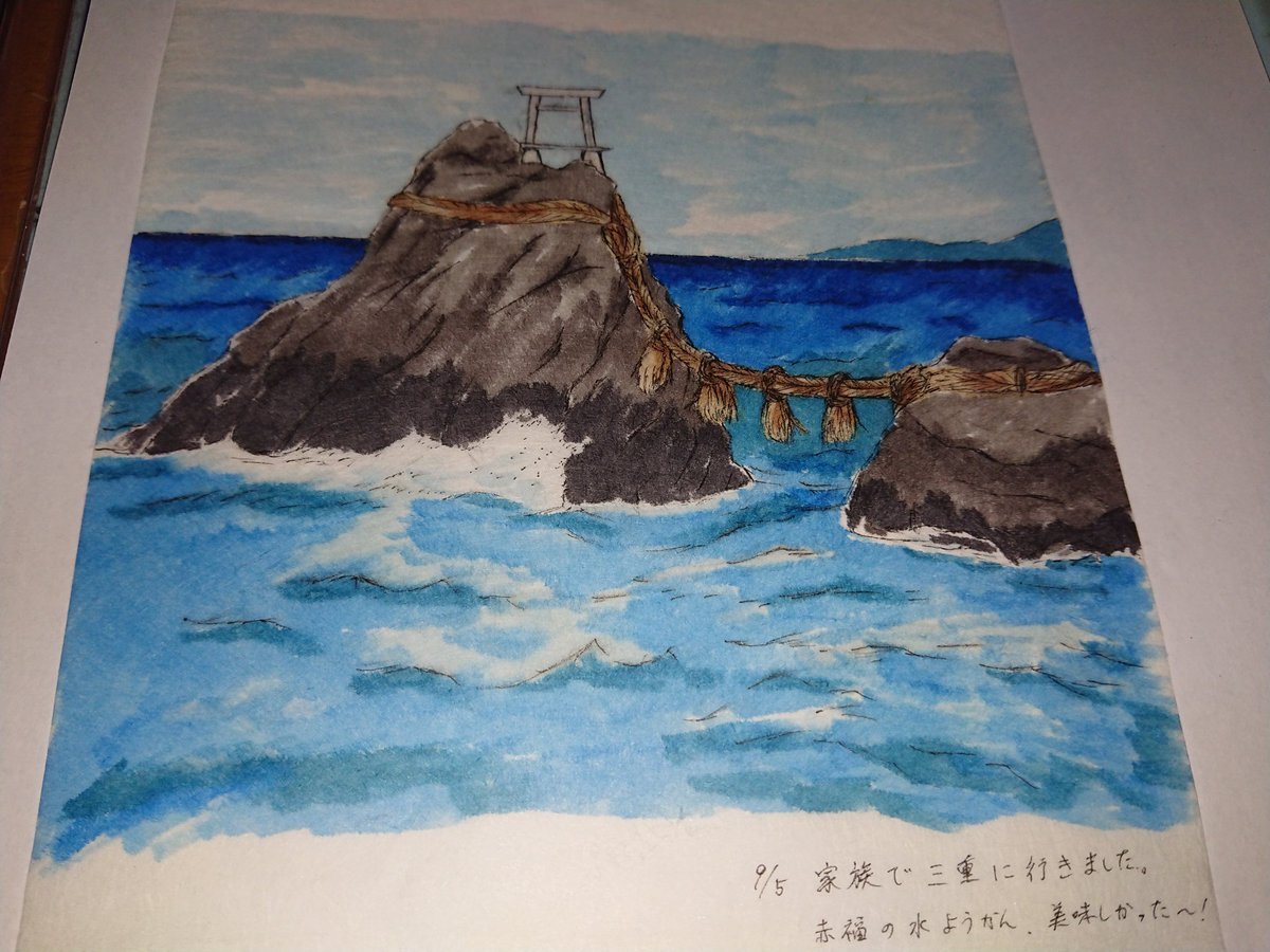 市のイベントで係長に協力依頼があったので、久々に描いてみた この間古いネオピコをまとめて処分したら思いの外色が歯抜けになったので、割引に乗じてチャオを買い増し #こよみのよぶね2025 #二見興玉神社 #夫婦岩 pic.x.com/iQW2rikaDV