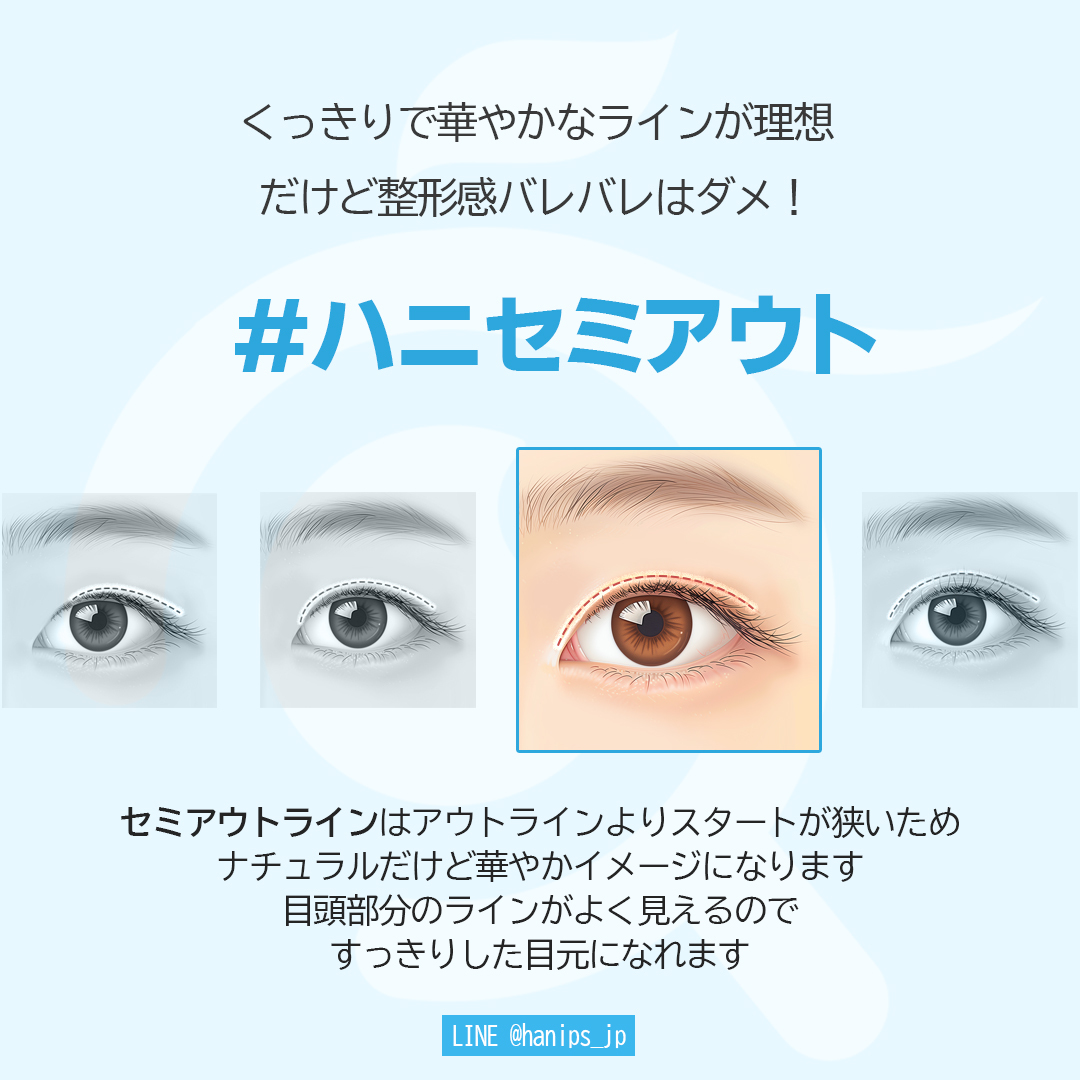 セミアウトライン始祖名人『チェジョンフン代表院長』 整形感なく自然だけど華やかなラインが理想‼ ハニのセミアウトは アウトラインよりスタート部分が離れていて幅狭くデザインするため、自然ながら華奢なイメージになれます ❓セミアウトQ&A ℚ。目頭切開、目上切開は必須ですか? 🧑 x.com/hanips_jp/stat…