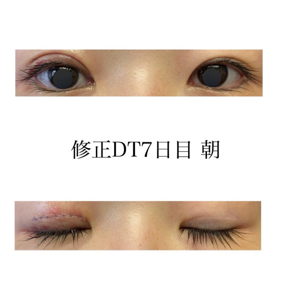 DT7日目 朝 抜糸前最後の写真となります。 目の開きが若干良くなった気がします。 形はとても綺麗なので、抜糸後に一気に腫れが引けば嬉しいです。 #二重切開修正 pic.x.com/IA6YoSQwoS