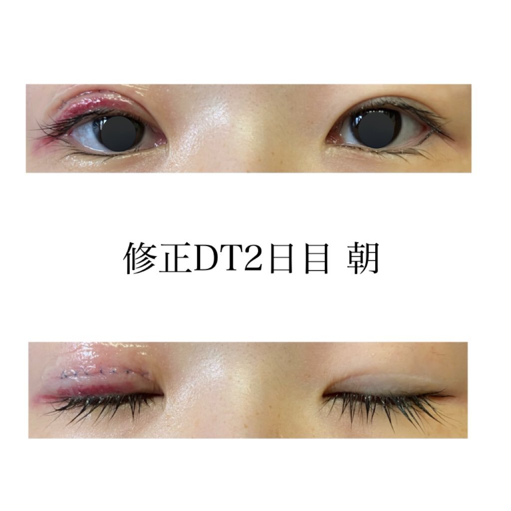 DT2日目 朝 傷口付近に赤みがややあります。 痛みはさらに弱まりましたので見た目の割に感覚的には問題ありません。 #二重切開修正 pic.x.com/sPp2GSsYCU