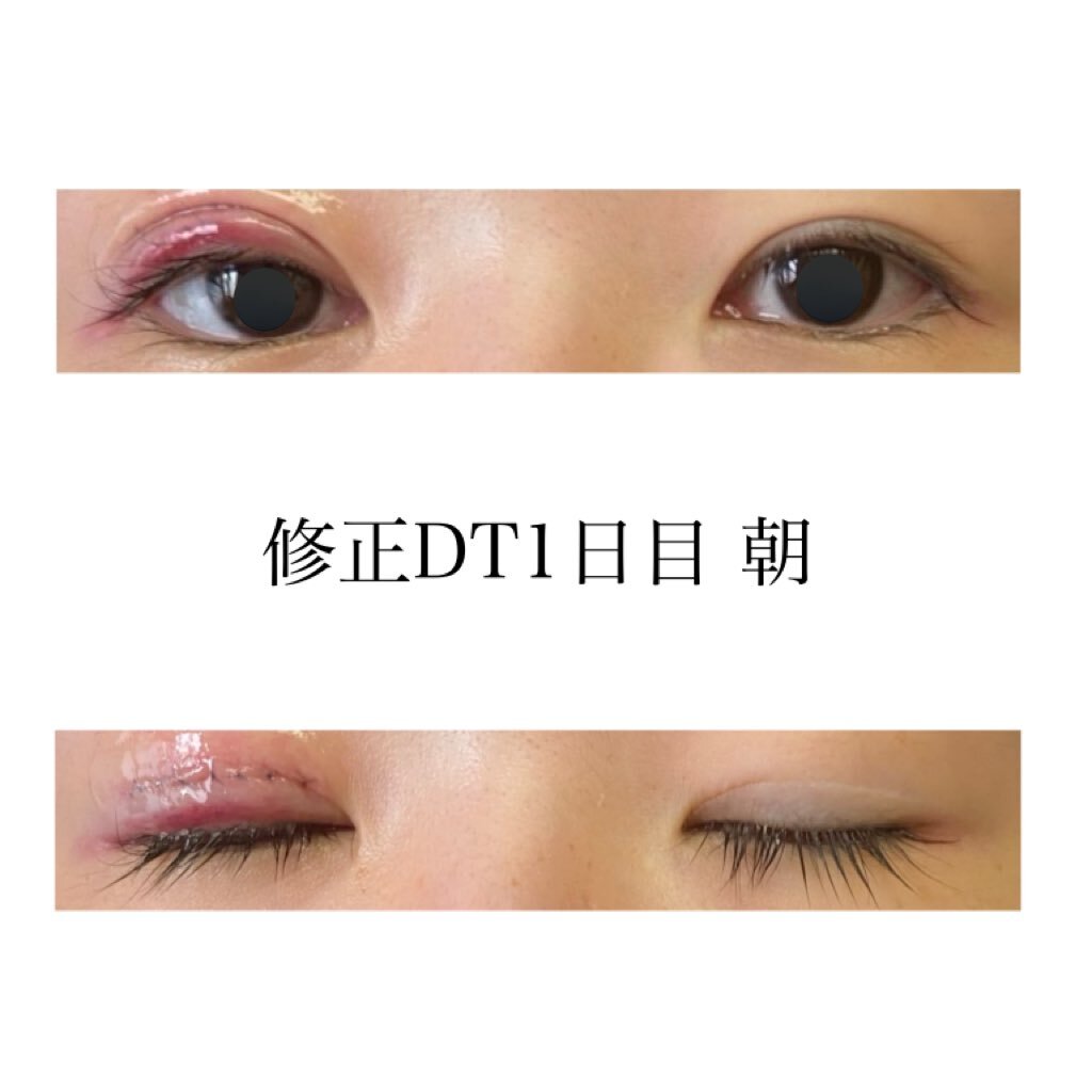 DT1日目 朝 結構腫れました。 前回はそこまでではなかったのですが、奥二重のライン処理の影響でしょうか。また、片目のみなので施術していない目と比較してしまっていることも大きいと思います。 #二重切開修正 pic.x.com/nMU99LsbWI