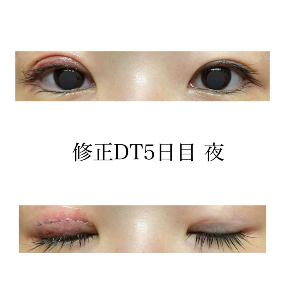 DT5日目 夜 内出血は朝より更におさまりましたが、腫れは大きな変化なし。 傷周りの赤みは多少気になりますが前回も赤くなったので想定の範囲内です。 #二重切開修正 pic.x.com/WNboIsSvQ3