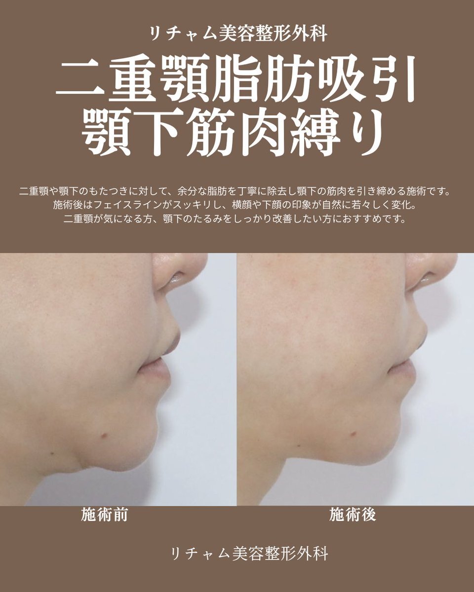 リチャムの #二重顎脂肪吸引#顎下筋肉縛り 💎 二重顎の脂肪をしっかり除去&顎下の筋肉を引き締め、フェイスラインをすっきりと改善✨ 自然でシャープな横顔へと変化しました🪄 当院はカウンセリングにご来院いただけない方のために写真診断を無料でご案内中📸 詳しくは公式ラインへ📩 #脂肪吸引 pic.x.com/6lP7GPIzGO