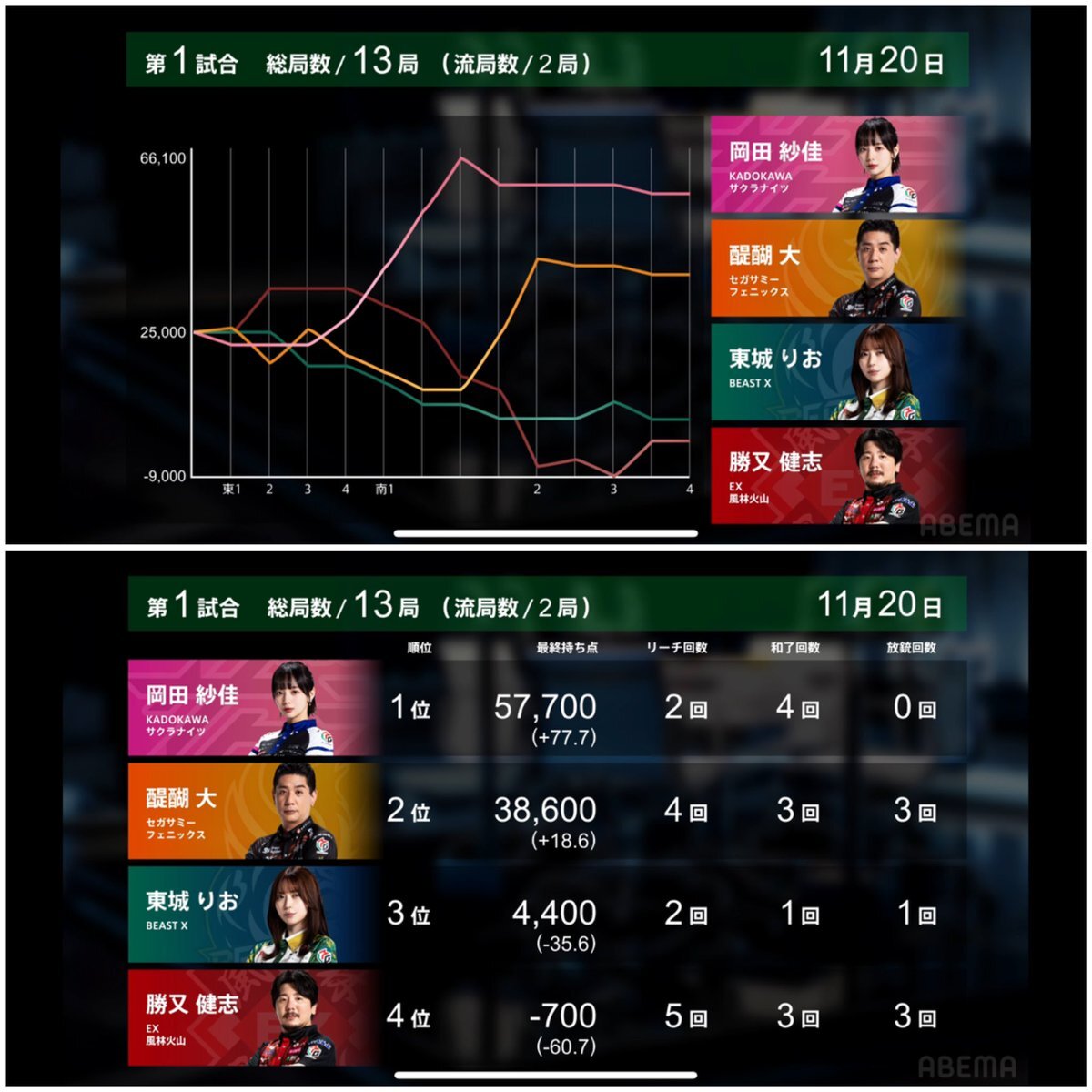 【11月20日 第2試合】亜樹×堀×土田 対局の裏側 @ABEMA で配信中 abema.go.link/czvoh #Mリーグ #土田浩翔 #EX風林火山 #二階堂亜樹 #KADOKAWAサクラナイツ #堀慎吾