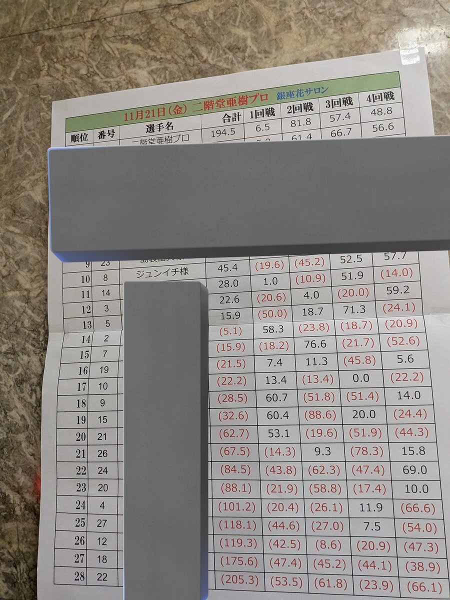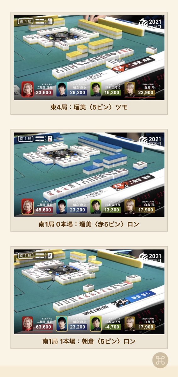 昼、キングダムからの夜は花サロン、亜樹さんといきなりの同卓、トップの方と点差が離れていたから2着でいいやって思っていたら亜樹さんまさかの捲りトップ、最後は3着落ちでした。 次の半荘もラスだったから今夜もだめかーって思っていたら最後の2回、トップ、トップで10位になれた。 #二階堂亜樹 pic.x.com/EjPV3MIZrB