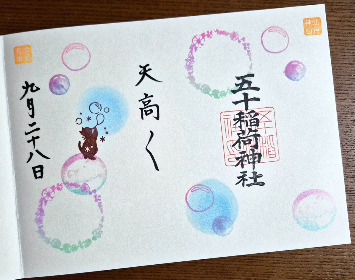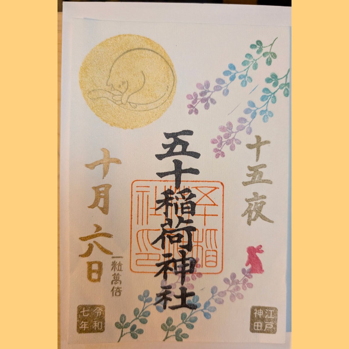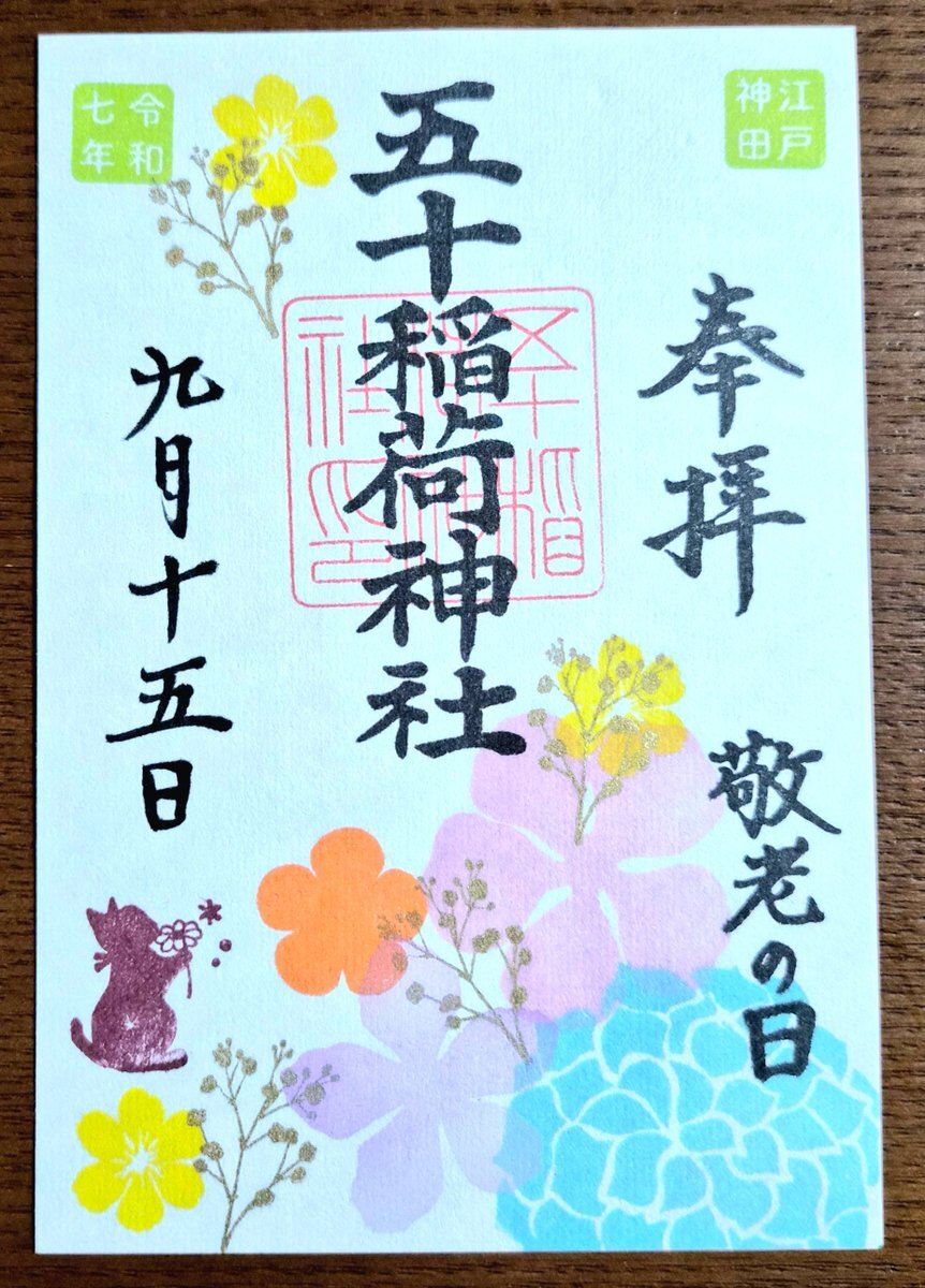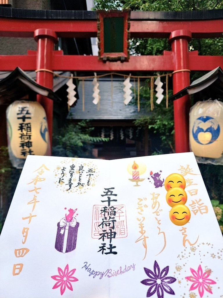五十稲荷神社🦊⛩️🦊 誕生日詣③ おかげさま詣の日(2日)に参拝🙏✨ 新しいデザインの誕生日御朱印を頂けました😺🎁✨ 本日10月13日は推し活仲間の結婚式💒👰✨ この素晴らしい結婚式に御朱印でお祝いを! 秋らしいかわいい御朱印も頂きました🌰🍠🍁😸✨ #御朱印巡り #五十稲荷神社 pic.x.com/yMkovWAykB