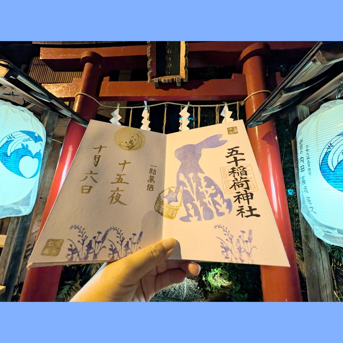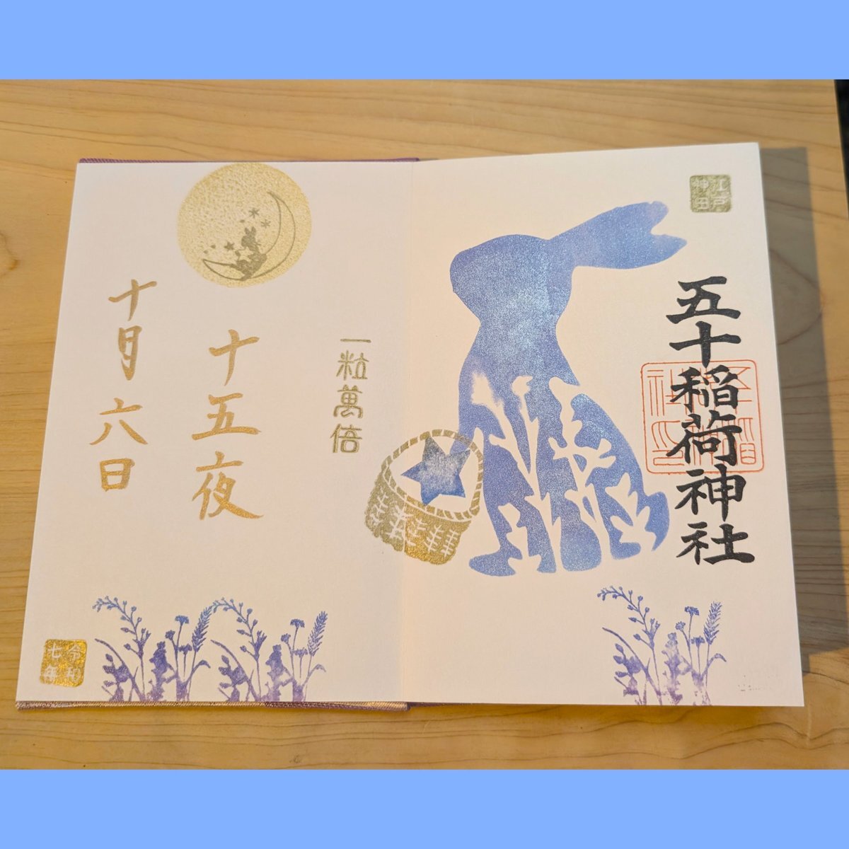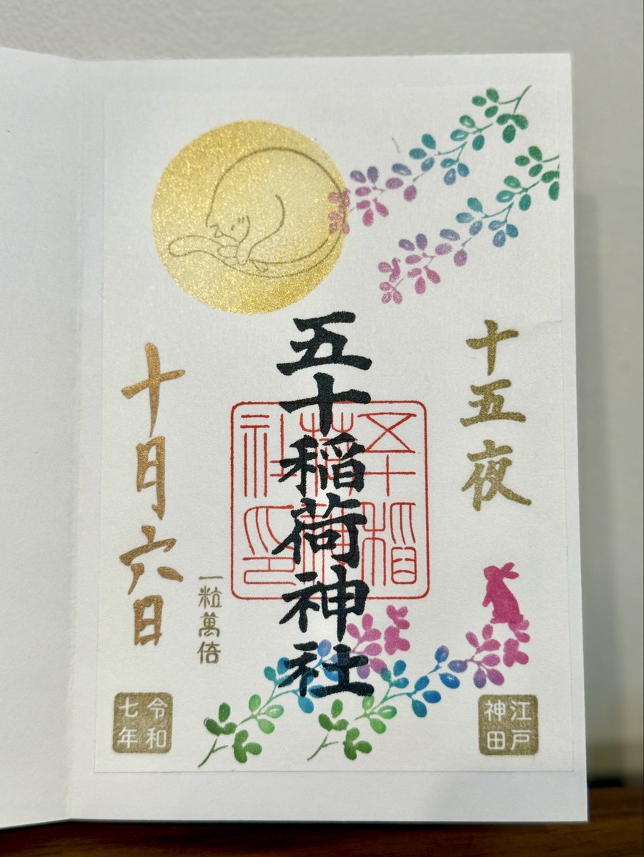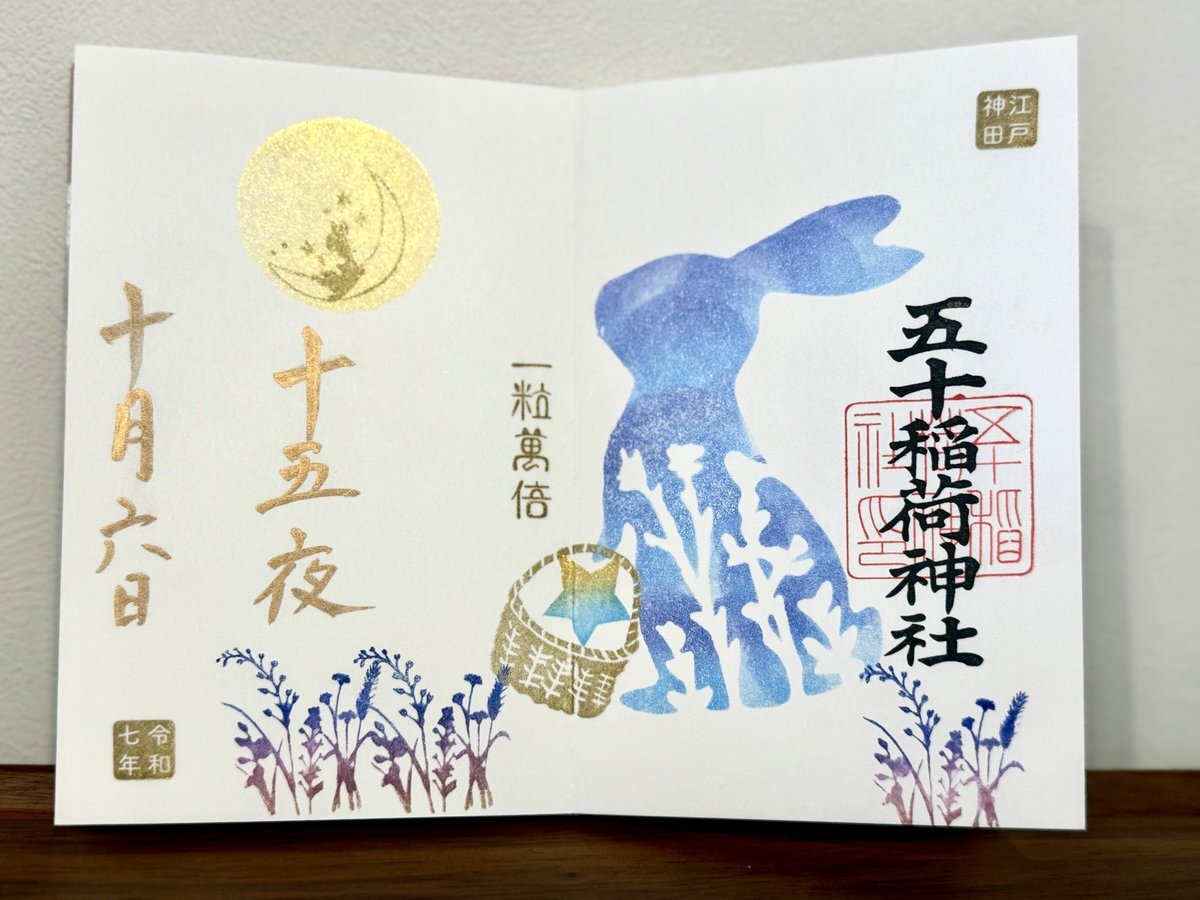 2025年10月6日 中秋の名月🎑 五十稲荷神社⛩️さんの御朱印の受付が19時までとの事だったので仕事終わってから参拝させていただきました👏 十五夜の書置き御朱印と見開きの御朱印をお書き入れしてもらいました🖌️ 帰り道にお月様といただいた御朱印とパシャリ🌕🐇📷 #神社 #御朱印 #五十稲荷神社 pic.x.com/az9OBbPioT