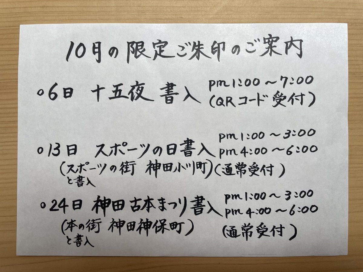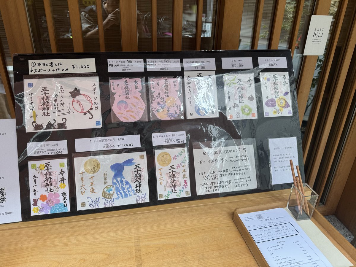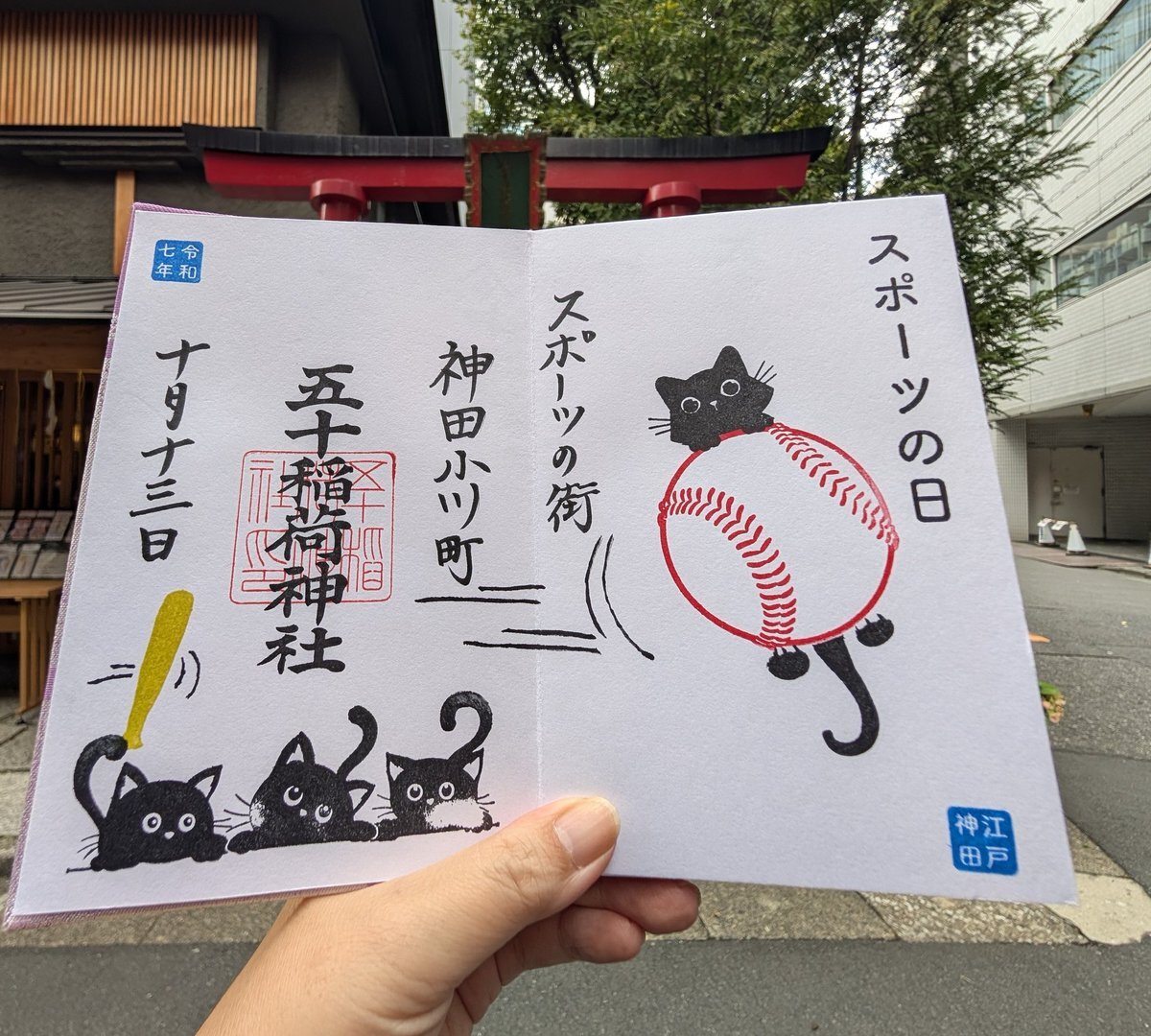 10月13日のスポーツの日より「スポーツの街神田小川町ご朱印」を頒布します 10月13日のみ書入でその後1ヶ月間 書置にて頒布予定です 書入に関しては別のポストにて詳しくご案内していますので必ずご確認のうえお越しください #五十稲荷神社 の鎮座する神田小川町は 世界でも有数のスポーツ用品店街 pic.x.com/WBBc5c7KmZ