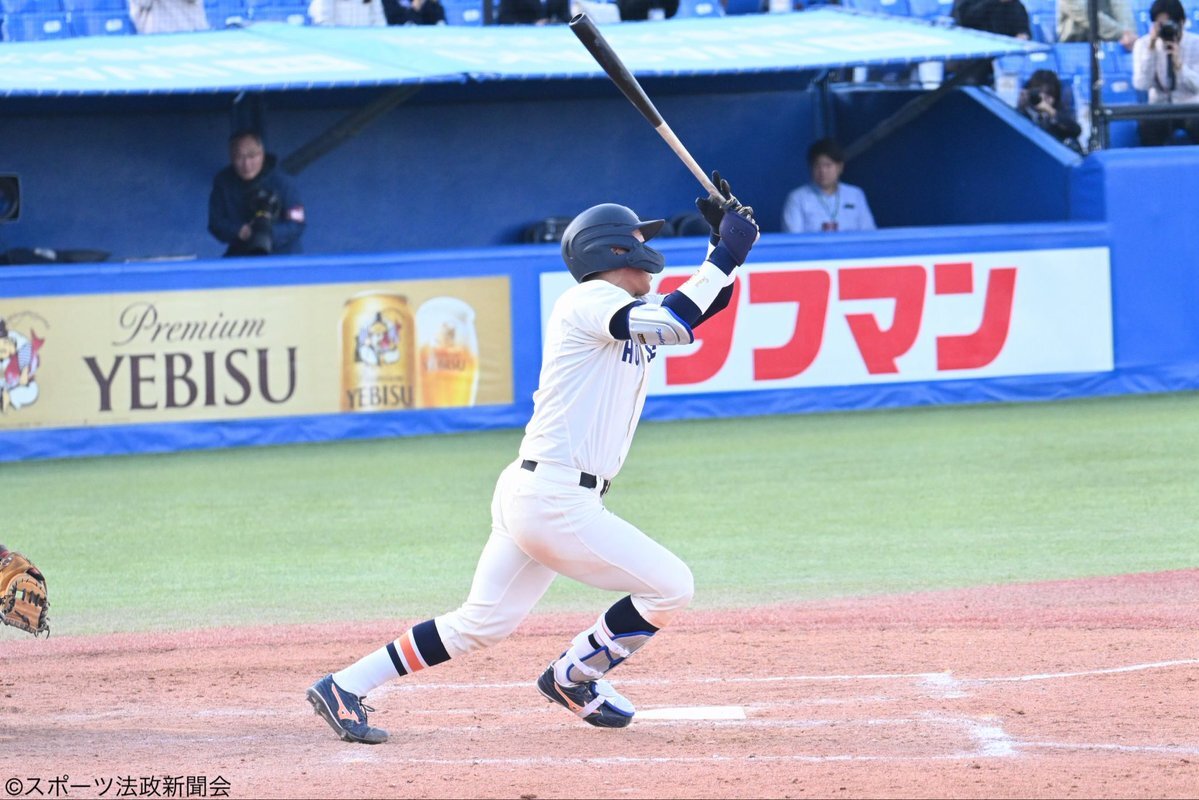 法政大学野球部 井上和輝 選手 衝撃が突き刺さるとはこのこと! 今秋4本目!1年生がレフトスタンドに運ぶとは…末恐ろしいです😱😱😱 📅 2025/10/28 法政vs東大 #井上和輝 選手 #東京六大学野球 #東京六大学 #TokyoBig6 #Big6 #東京六大学カメラ部 #法政大学野球部 pic.x.com/VaV06E4tjj