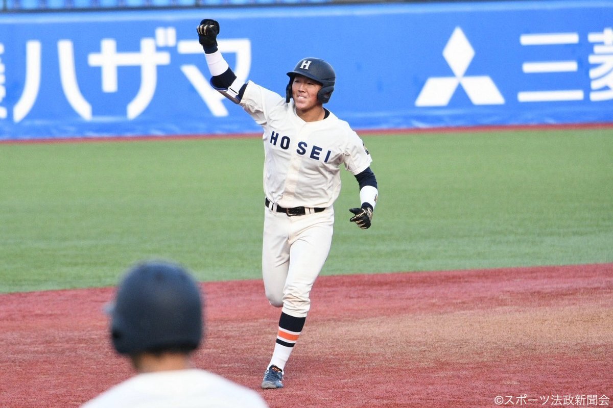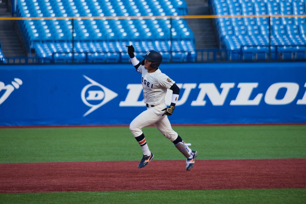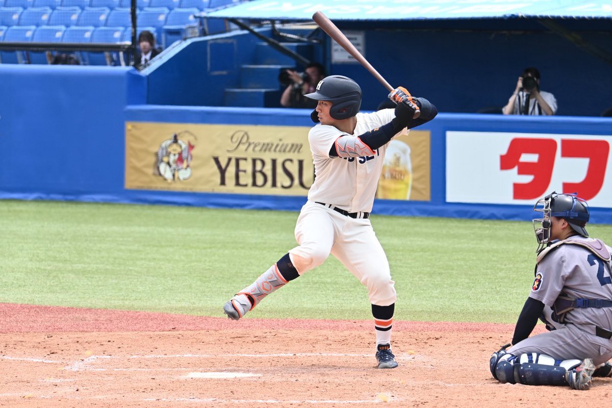 スーパールーキー #井上和輝(駿台甲府①)がドラフト上位候補左腕 #毛利海大(福岡大大濠④)から反撃の狼煙を上げる左中間最深部へのタイムリーツーベース! その後品川の2ランで一気に同点! #血の明法戦 pic.x.com/jb4BF3kt0j