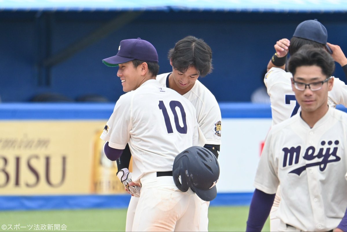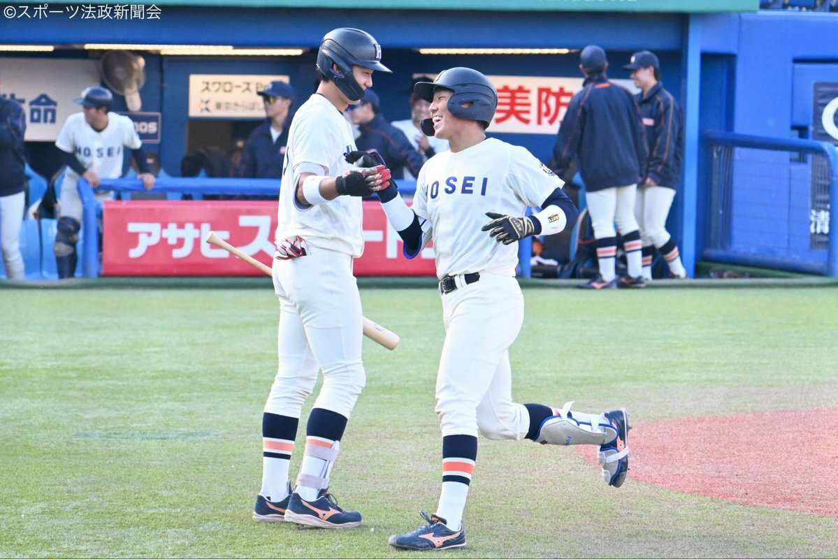 【硬式野球】今季最終戦は18安打10得点の大勝 #松下歩叶 & #井上和輝 ”アベック4号弾”に4年生も躍動! 今季は7勝7敗1分勝ち点3でAクラスフィニッシュ/東大3回戦 ⬇️記事はこちらから sports-hosei.net/84790/ (写真:ともに4号弾を放った松下と井上和) #スポホウ #法政 #六大学 #執念 pic.x.com/f4n98rhlV2