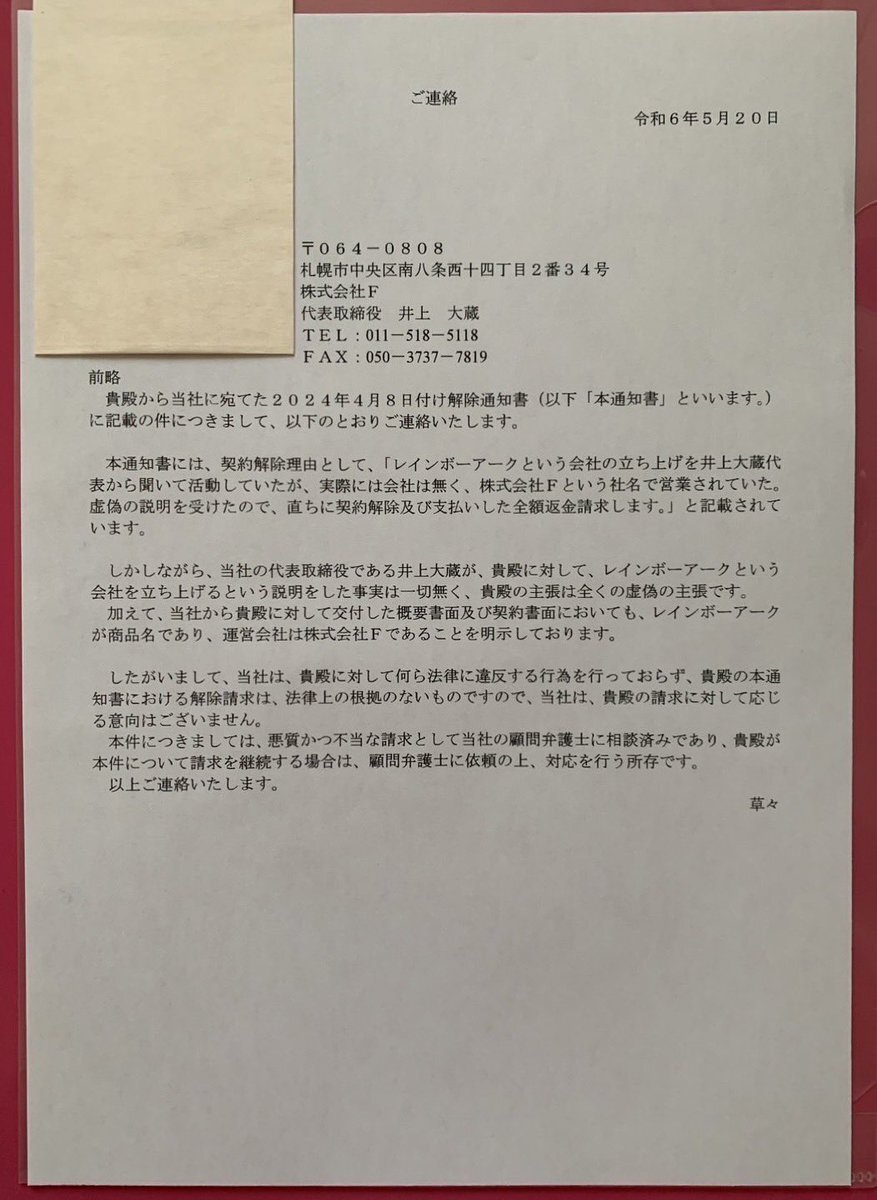 レインボーアークと言う製品を持つ MLM会社。株式会社F。井上大蔵も苦しいね #マルチ #レインボーアーク #化粧品 #エクソソーム #井上大蔵 #ビットサンズ #冨岡剛の右腕 pic.x.com/l5UOtLONvO