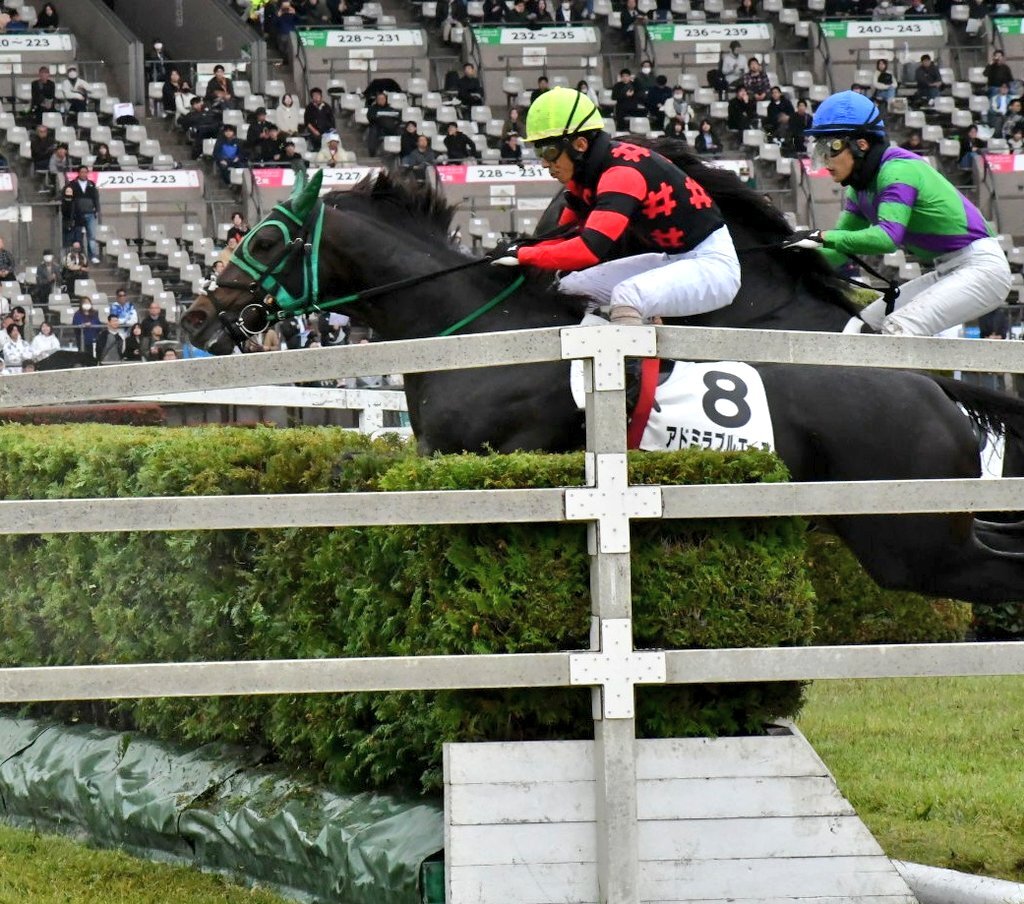 2025.10.26 東京4R 障害3歳以上 未勝利 アドミラブルエース×伴啓太騎手 ダスク×井上敏樹騎手 障害飛越 #アドミラブルエース #伴啓太 #ダスク #井上敏樹 pic.x.com/07S4qFAZux