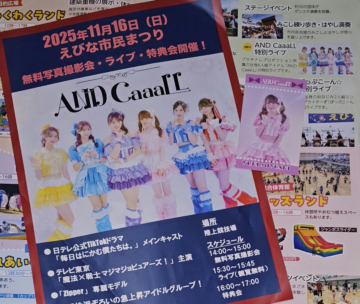 #えびな市民まつり に東京からアイドルグループ #ANDCaaaLL がやってきたぞー!無料撮影会でメンバー5人と一緒に写真撮らせていただきました! 左から #井下珠里 さん #東条澪 さん #三好佑季 さん #豊田ルナ さん #紺野結 さん 皆さんありがとう! pic.x.com/QtF2C8jXmn