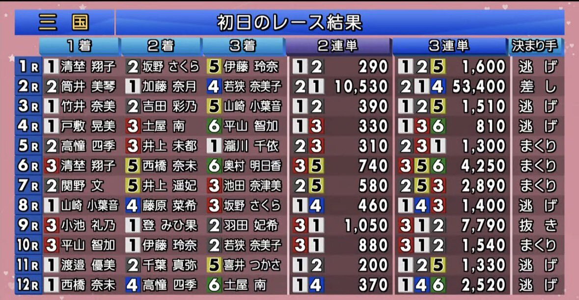水曜お疲れ様でした♪ #三国お遊戯会 初日 2R以外は順当。#はるぴ さん2着発進です。一方 #戸田記念。最初はらしくなかったが後半から一気に荒れました(笑)そして #井口佳典 よ展開だけかよ💢意味不明やわ でわ #荒前ウオッチ 今夜は18時55分スターティン。#ゆうネクッチチャートWednesday20 発表です pic.x.com/Skhahmyl0x x.com/ynexti48/statu…