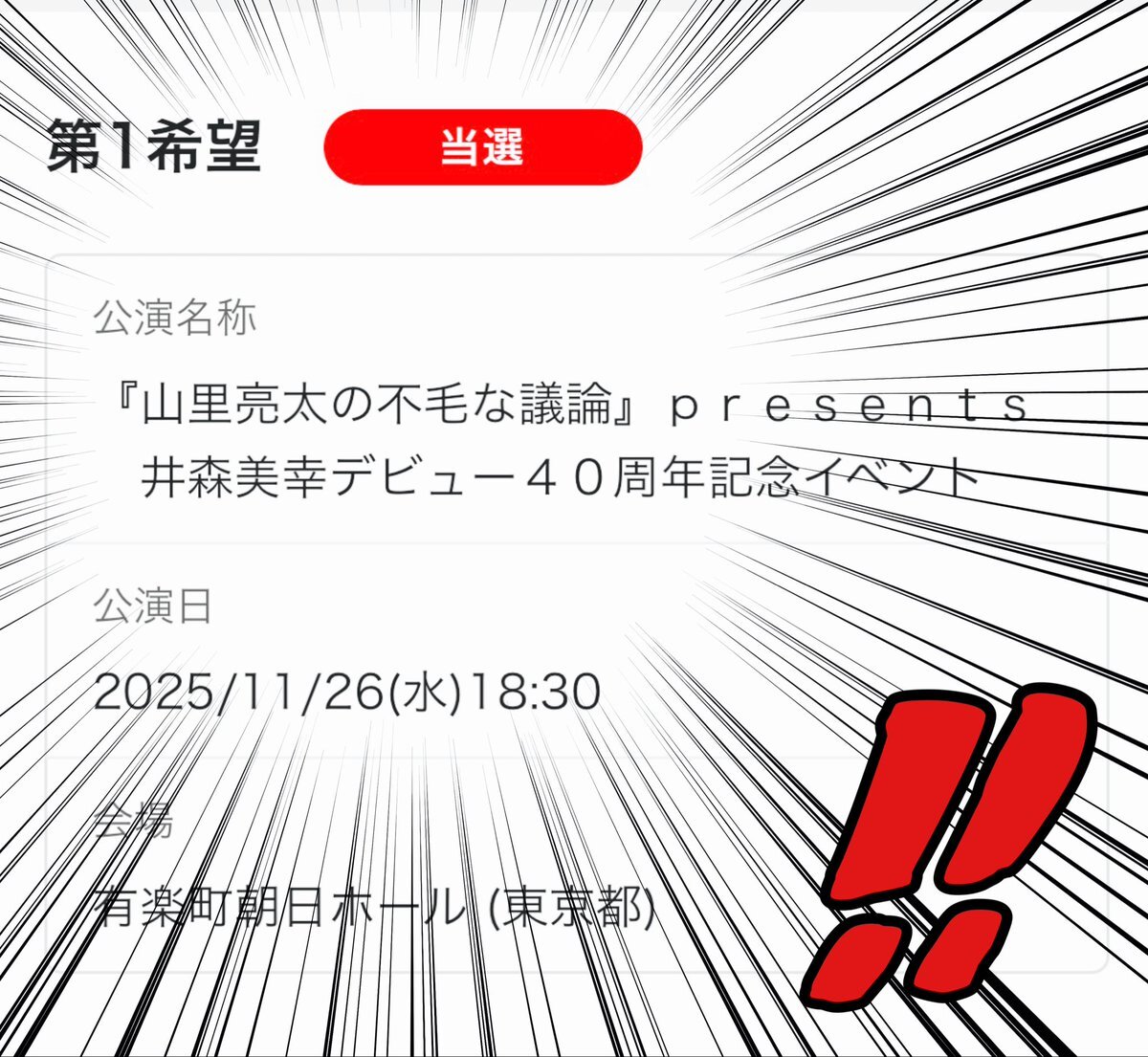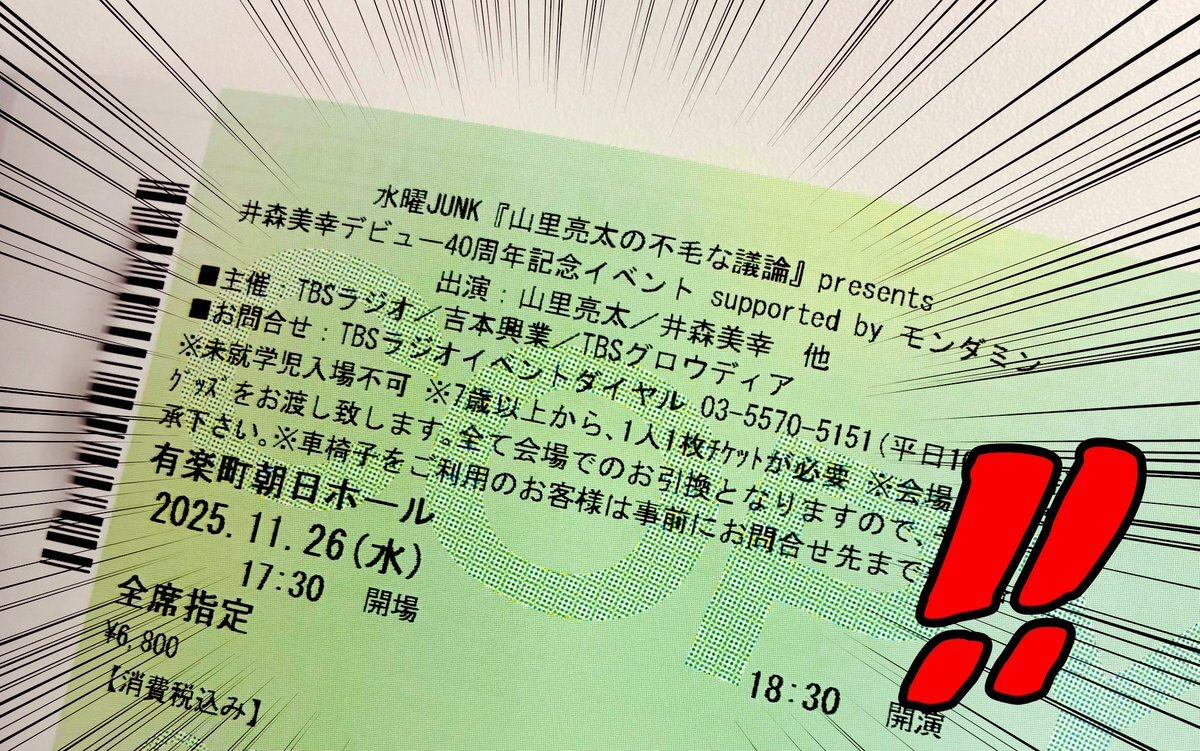 【山里亮太の不毛な議論 #fumou954 】 「#井森美幸 デビュー40周年記念イベント」 ★11/26(水)@有楽町朝日ホール ★ゲストにビビる大木さん!流れ星☆さん! ★イベントの配信もあります! tbsradio.jp/event/101232/
