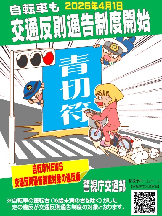 令和8年4月1日から自転車も『#青切符による交通違反の取締り』の対象となります🚴 📣自転車も車両の仲間です❗️交通ルールをしっかり守りましょう‼️ #自転車 #交通反則通告制度 pic.x.com/2geuCThXjj