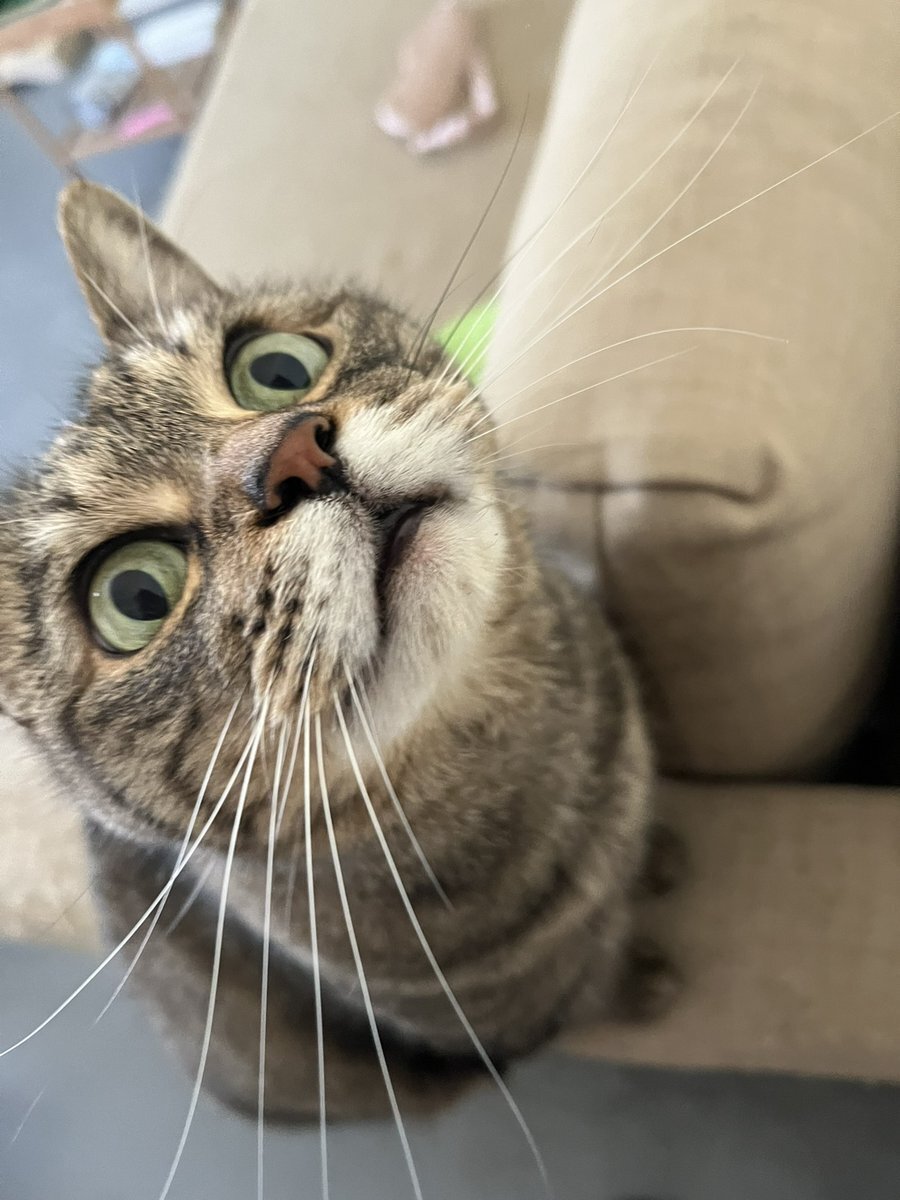 今日ポイフル食べてた息子、「まま、これはーとだからままがたべて。ままがだいすきだから」と持ってきてくれたのに、ままはあなたをひどい髪型にしてしまいました(泣いてる)