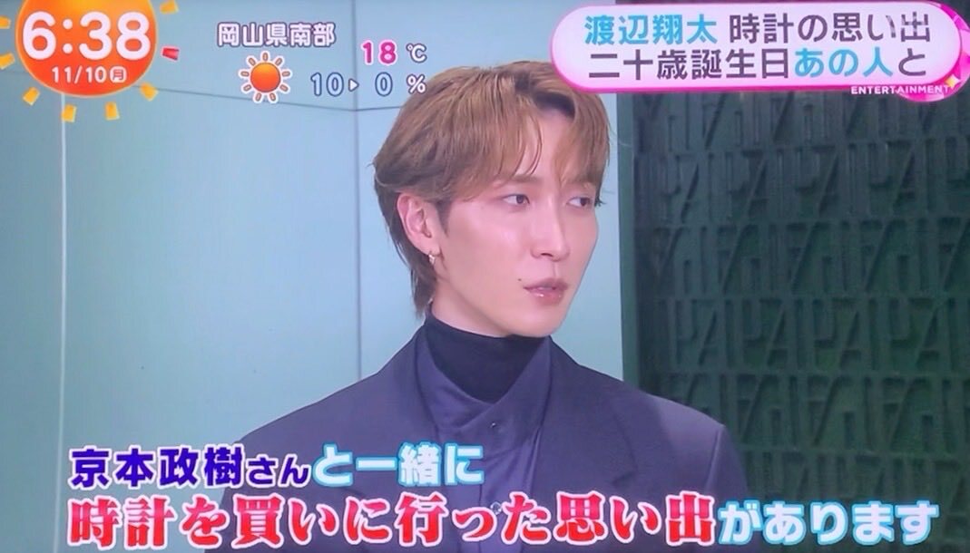 二十歳の誕生日のときに #京本政樹 さんと一緒に 時計を買いに行った思い出があります。 大丈夫ですか?何か物足りなさ感じてませんか? ちょ〜っと感じていたので・・ しょっぴー! #渡辺翔太 pic.x.com/vvCLCy6LVT