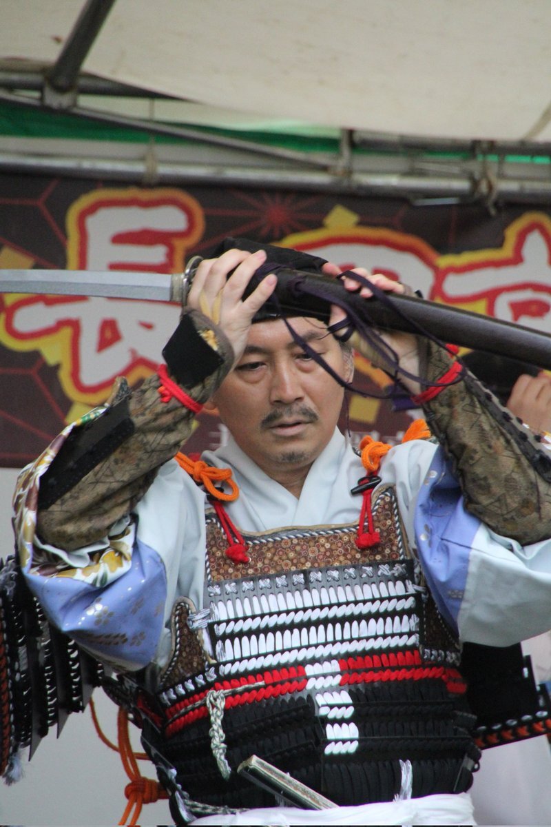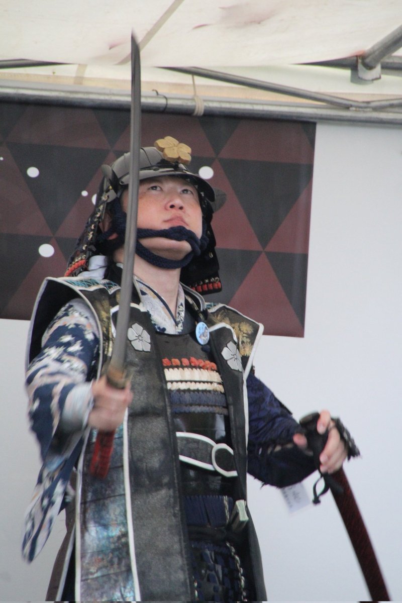 #越前若狭お城フェス2025 にて、#京都·長岡京おもてなし武将隊つつじ の #細川藤孝 様③です。 4枚目、この日の藤孝様の陣羽織の家紋は九曜紋でなく、丸に二つ引きの紋でした。 pic.x.com/he3diTHqdc