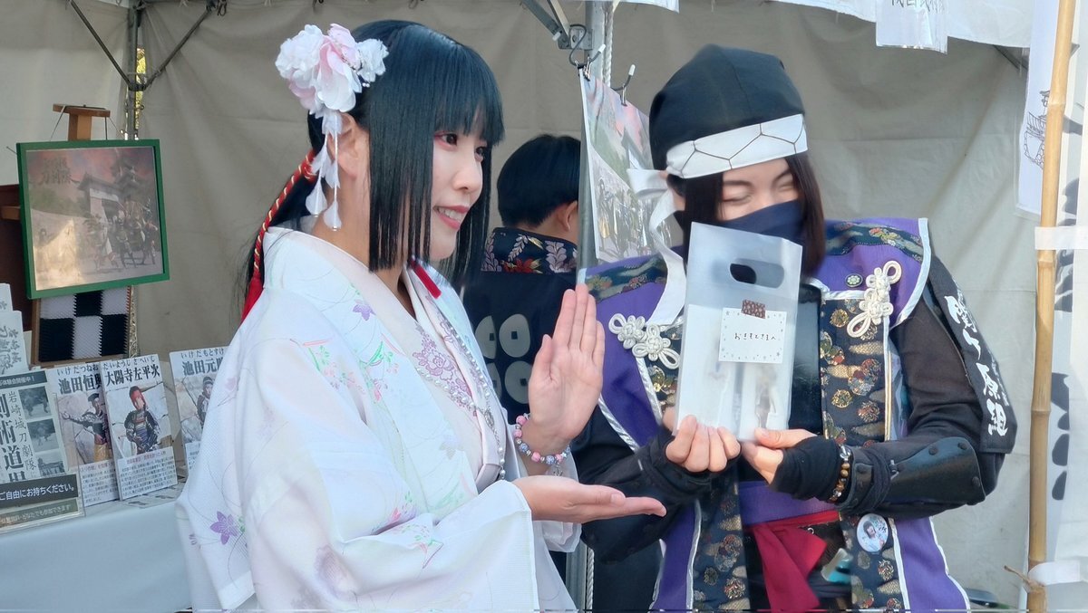 #サムライニンジャフェスティバル2025 にて、興元様のお買い物終了後に、つつじの義姉の 玉子様とのお二方の写真が撮れました。 #京都·長岡京おもてなし武将隊つつじ #古戦場おもてなし武将隊関ケ原組 #細川玉子 #細川興元 pic.x.com/PJoaOkXbgF