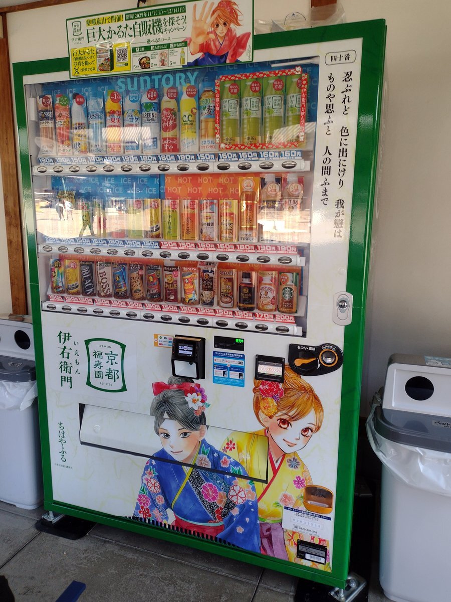 ベンチで休憩されている方が多数いらっしゃったのでこの角度が限界。狭いところは難しいな。 #伊右衛門巨大かるた自販機 #京都コースに応募! @Iyemon_jp pic.x.com/ReohuzWiY6