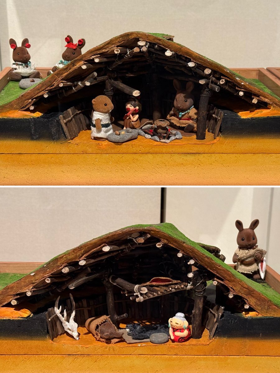 文博でやってる縄文展で、シルバニアファミリーの縄文ジオラマがかわいかった。竪穴式住居の中もいいけど、鮭をとってきたドヤ顔がなんかいいなあ。 #京都文化博物館 #世界遺産縄文 #縄文時代 pic.x.com/gqJrCD7p9a
