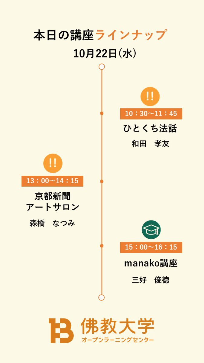 \本日の講座ラインナップ/ ①浄土宗 #百万遍知恩寺 布教師会提携講座 ひとくち #法話「導き」#國分寺#京都新聞総合研究所 提携講座 アートサロン「特別展「#宋元仏画―蒼海を越えたほとけたち」」 ③manako講座「日本中世の #興福寺 と歴史書」 講座一覧▶x.gd/7IAyZ #京都 #佛教大学 pic.x.com/Mb0thSbGAR
