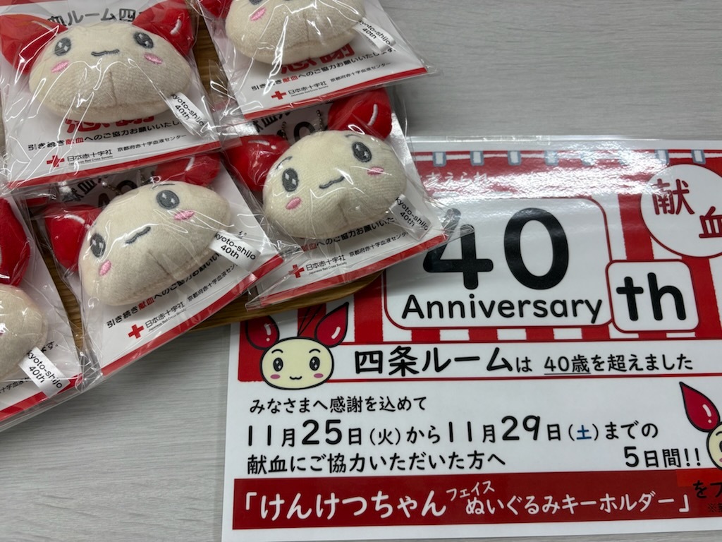 四条献血ルームで400mL献血しました🩸 お目当ての響けユーフォニアムのノベルティももらいました(^^) アンケートのコラボ企画してほしい作品として京都が聖地の「甘神さんちの縁結び」書いておきました。⛩️ #京都献血 pic.x.com/q1igfdHGH9