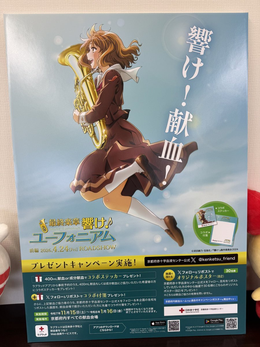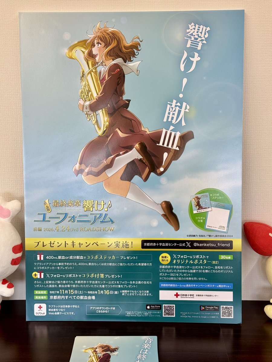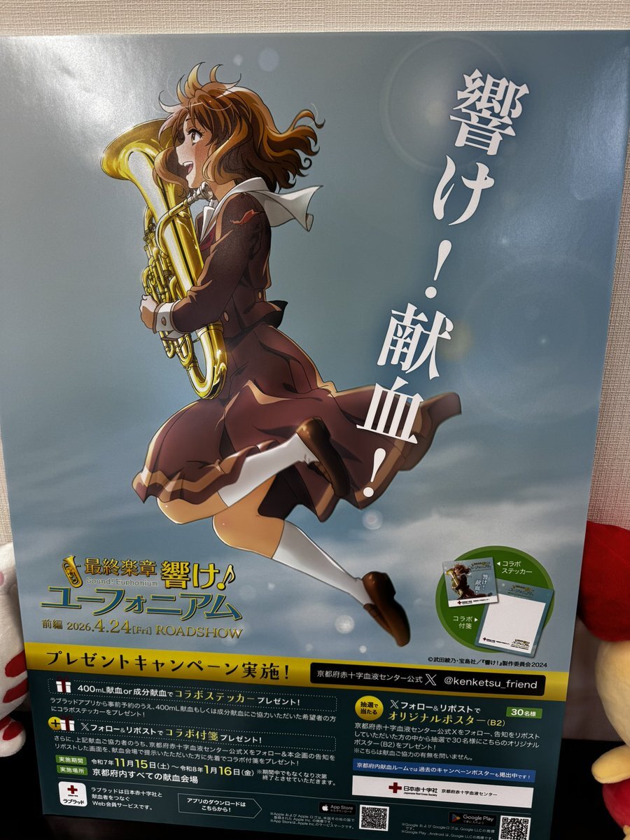 響け!献血! 抜いていただきました。 #京都献血 #ユーフォ最終楽章 #anime_eupho #響け献血 pic.x.com/7udYgFjpIS x.com/kenketsu_frien…