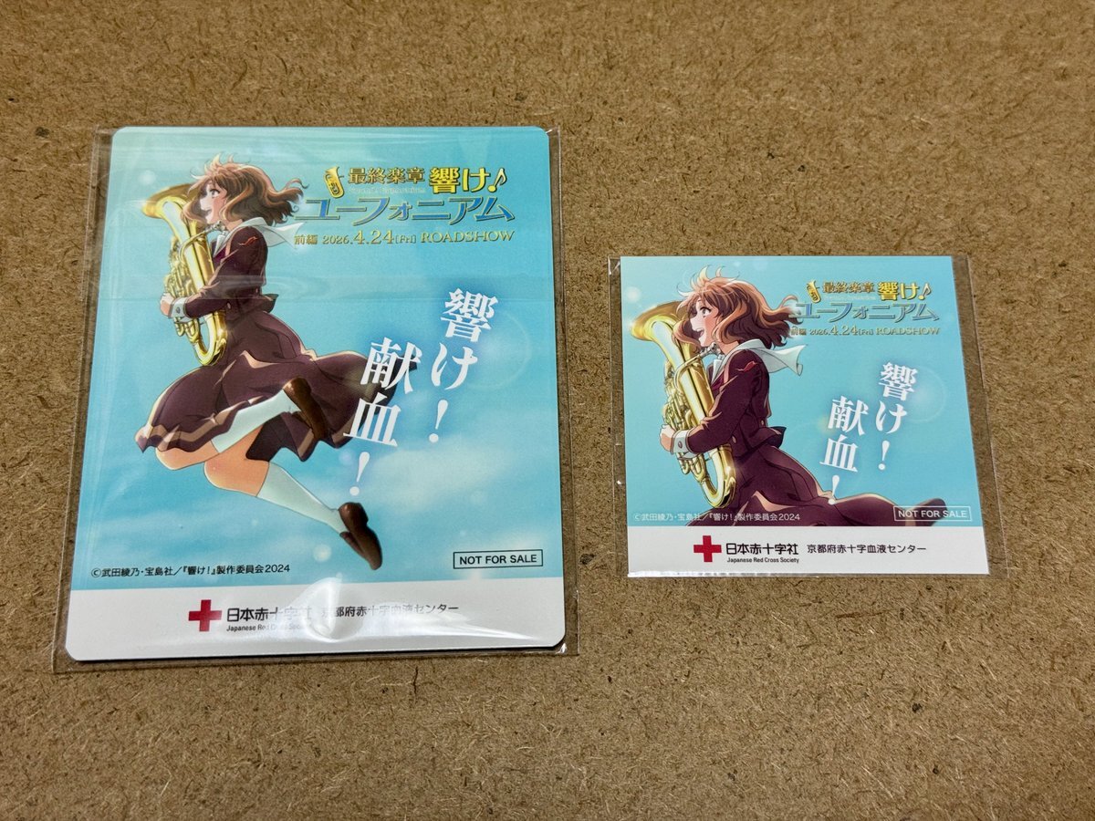 毎年恒例にしている 誕生日献血 \響け!献血!第8弾 / と レッドファクション2回目 の血小板ちゃん献血をして 響け!ユーフォニアム のノベルティ と 献血ちゃんカードを いただきました #京都献血 #献血 #ユーフォ最終楽章 #redfaction #anime_eupho pic.x.com/yMxloC7ZIr