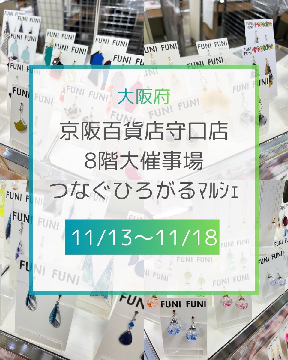 本日より始まりました京阪百貨店守口店8階催事場つなぐひろがるマルシェの出展、早速ご来場の皆様ありがとうございます😊 お客様スナップもありがとうございます💕 お写真は順次掲載させていただきます🙇 #FUNIFUNIアクセサリー #京阪百貨店守口店 #つなぐひろがるマルシェ pic.x.com/p7BHaFbRZS
