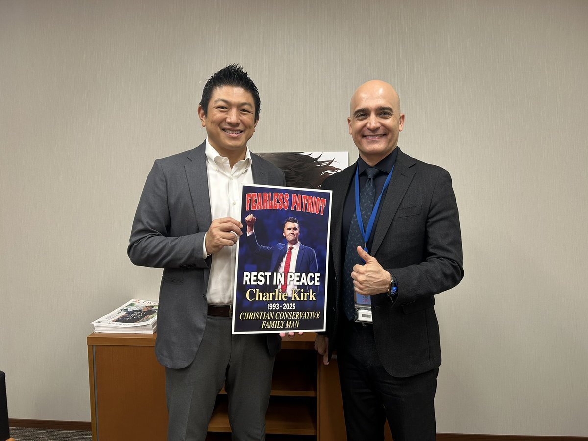 アメリカからチャーリーカーク氏の友人が訪ねてきてくれました。 トランプ政治についていろいろ教えてもらい、有意義な交流ができました。
