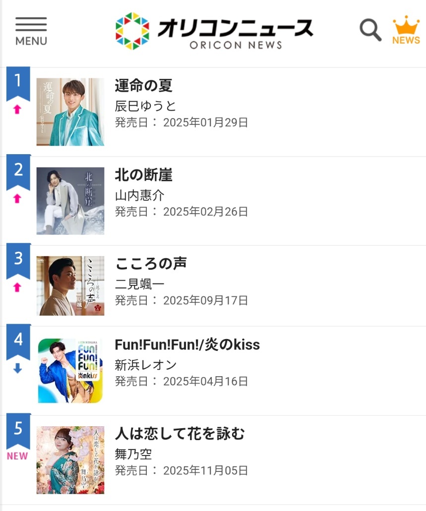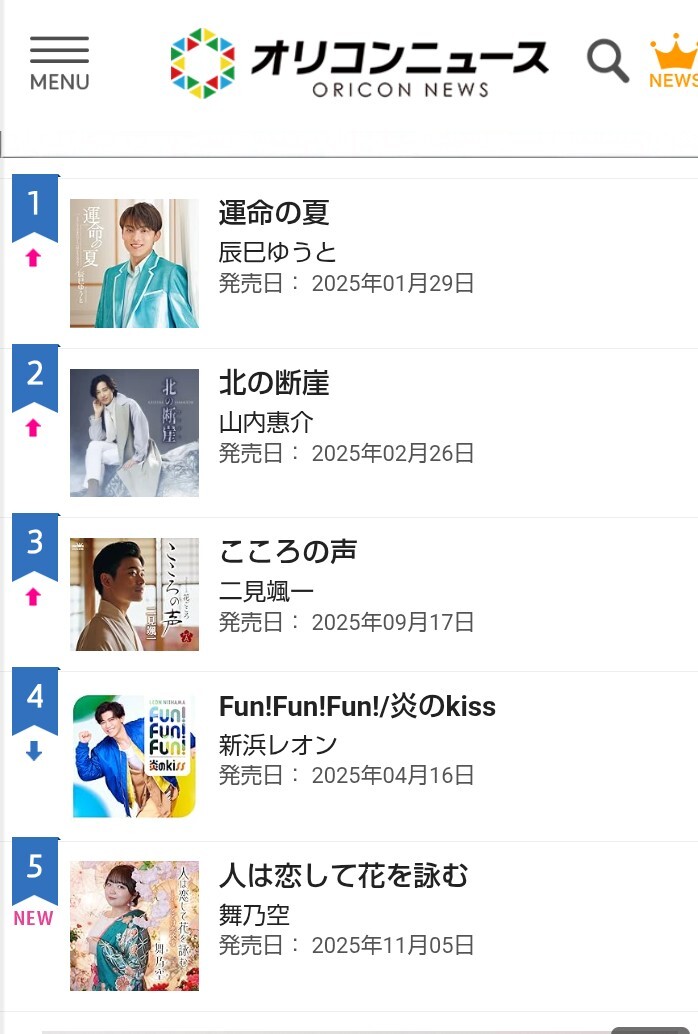 舞乃空ちゃん💕 @manoa_sun 🏆️オリコンランキング 『#人は恋して花を詠む』 🎶週間音楽ランキング 【11月3日〜11月9日】 🔸演歌・歌謡シングル部門 初登場 5位‼️ 🔸シングル部門 初登場 28位 シングル売上の最高順位も、まだまだこれからです🌈 #舞乃空 #演歌歌謡 pic.x.com/u9KZ5yRMEX