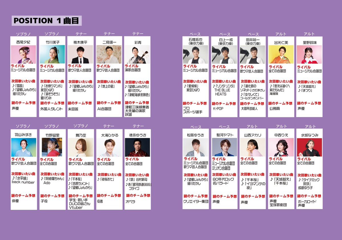 🔶◆🔶 確認してください 🔶◆🔶 / 📢12月22日(月)19時〜 オールスター合唱バトル立ち位置!🖐️✨ \ 優勝を狙うぞ!演歌合唱団チーム!🏆 📝出演者皆さん「謎のチーム」予想をしてくれてます🖐️ 当たるかな…🤭 #オールスター合唱バトル #演歌合唱団 #舞乃空 #人は恋して花を詠む #まのあ x.com/gasshobattle/s…