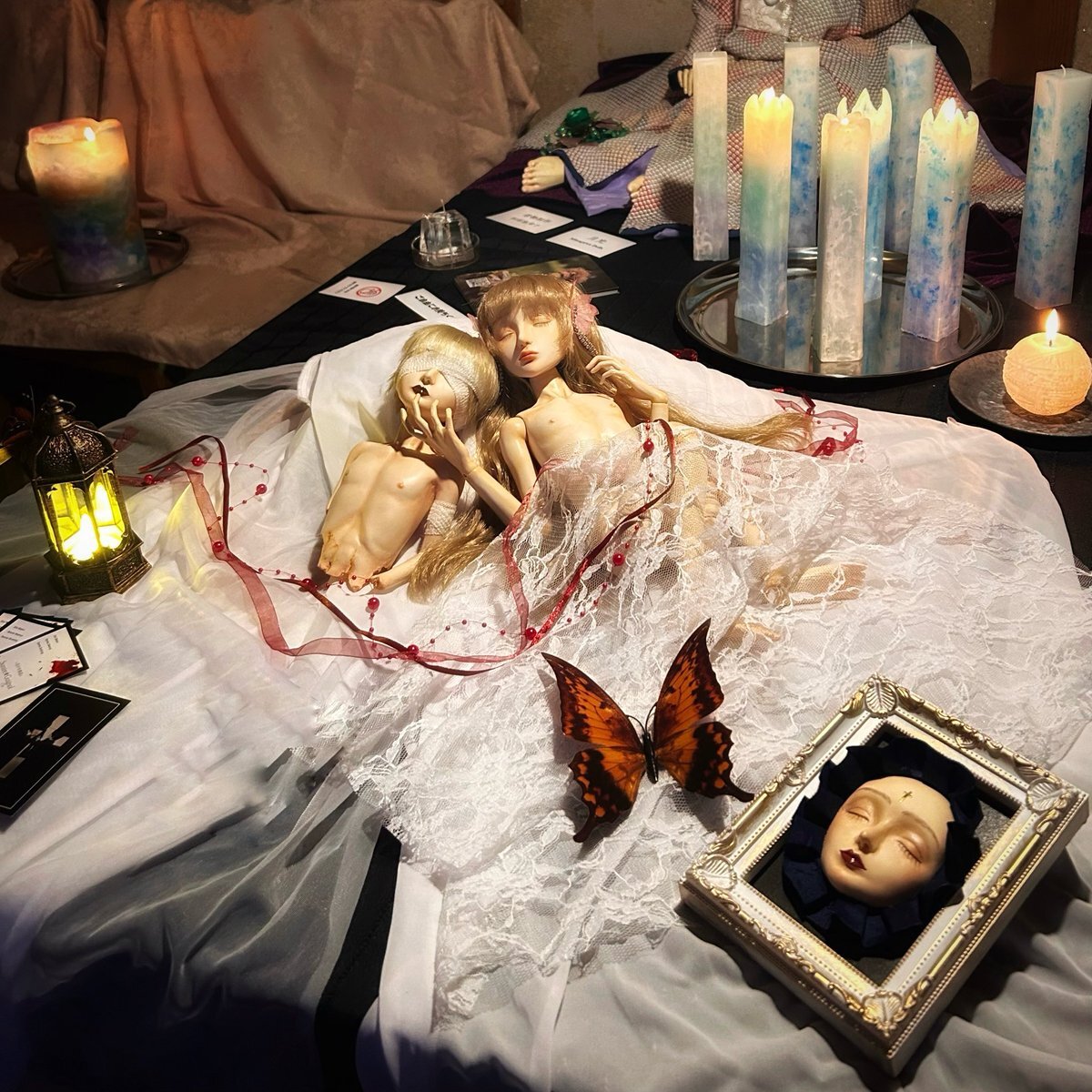 🥀🕯夜の展覧会🕯🌙 キャンドルナイト展示させて頂きました。 素敵な一夜を過ごしました✯*・゚ #人形 #ドール #創作ドール #創作人形 #人形作家 #球体関節人形 #doll #bjd #porcelainbjd #mybjd #dollart #dollartist #キャンドル #カフェ #遊牧民族 #展示会 pic.x.com/IiY3POScr2