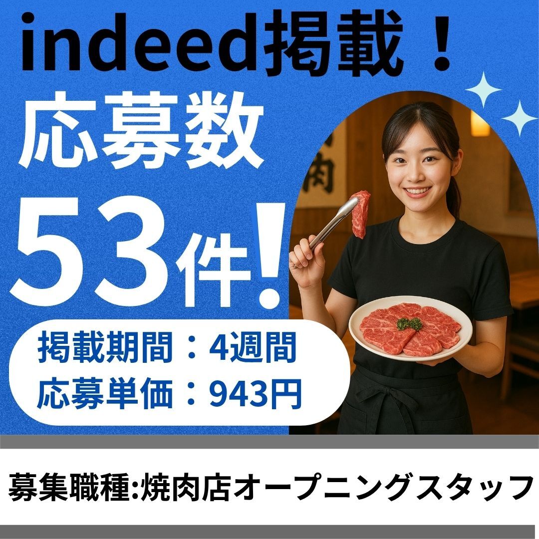 #焼肉店オープニング の募集にて 4週間掲載で53件応募✨ \ #応募単価 943円 #費用対効果#人材採用 でお困りの #採用担当者 様、弊社で #求人募集 掲載しませんか?最適なプランをご提案します HPにも効果事例あり✨ xmediaokinawa.com/topic/ pic.x.com/c5CZsFdDIP