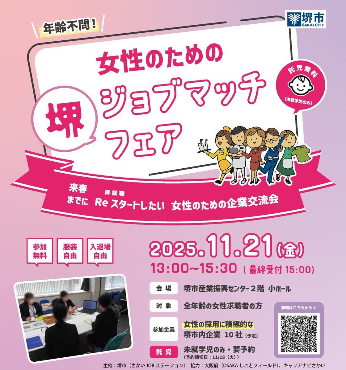 【参加無料】 女性の採用に積極的な企業様必見👀 / 11/21(金) 女性のための堺ジョブマッチフェア 参加企業10社募集!! \ 堺市内企業で働きたいと考える女性求職者と 出会えるマッチングのチャンス✨ 10/15(水)12時申込締切! sakai-jobstation.jp/taishoshabetsu… #合説 #人材採用 #女性採用 #堺で就職 pic.x.com/k0ANP15Uge