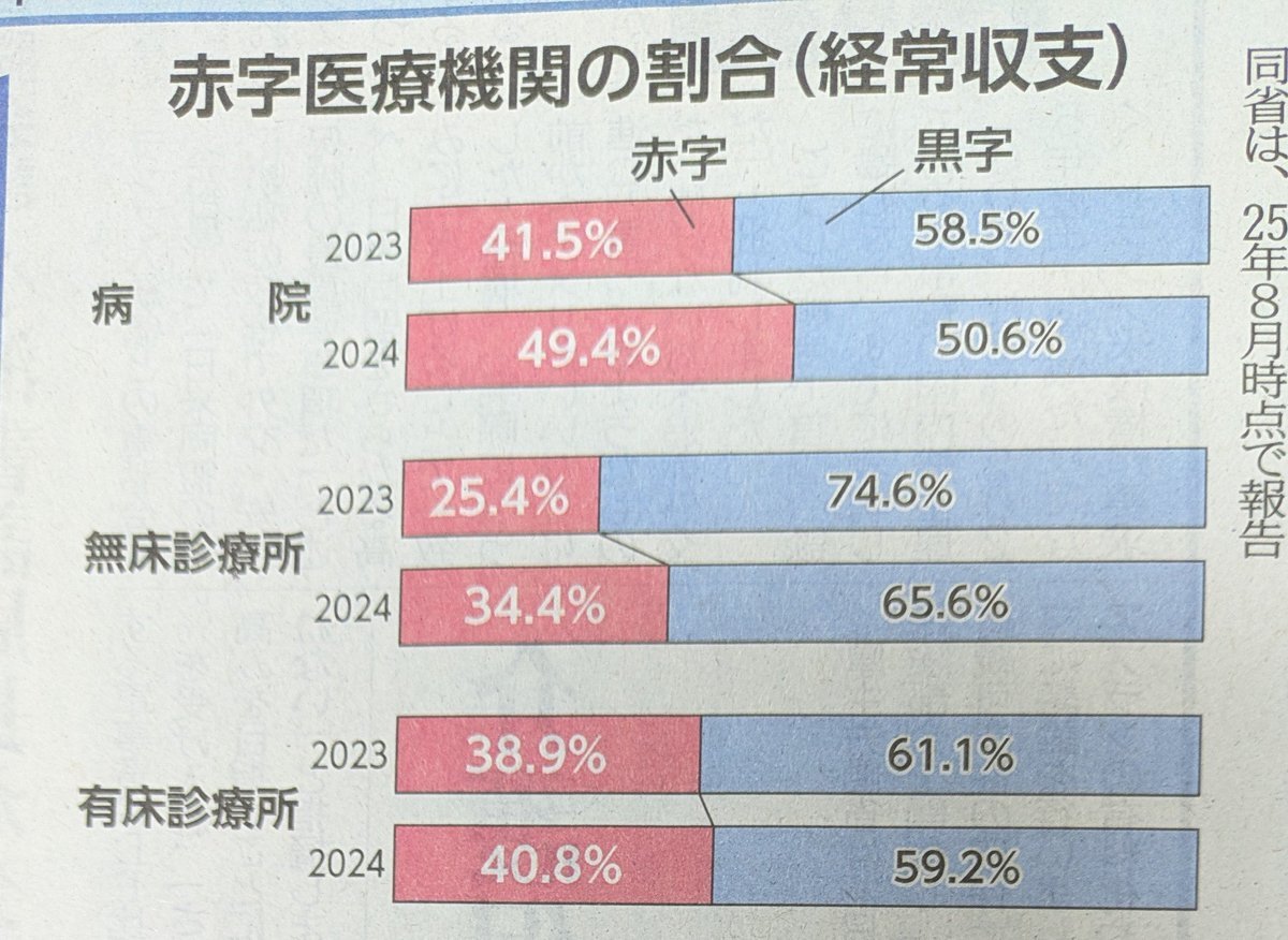 日本の病院の過半数が赤字。自治体立病院では9割が赤字(厚労省発表) 日本医師会・角田徹副会長 ーーこのままだと患者や国民を守る地域医療の崩壊につながる ーー早期の補助金とコスト増に見合った診療報酬の期中改定を緊急かつ最大限に行うことが必須だ 軍拡とどっちが大事💢⁉️ 記事「赤旗」