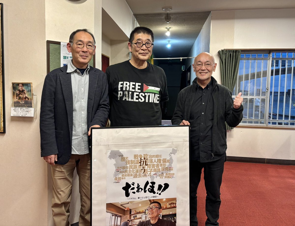 進富座さんでの上映初日が、無事に終わりました。 ご来場頂いた多くの皆様に心より感謝申し上げます。 支配人の水野さん(写真左)の司会の元に、アフタートークも楽しんで頂けましたでしょうか。 残り二日間、ご来場をお待ちしています! #だぁほ‼︎ #進富座 #パギやん #人権問題 #反戦平和 pic.x.com/qTZg1Cs8qn